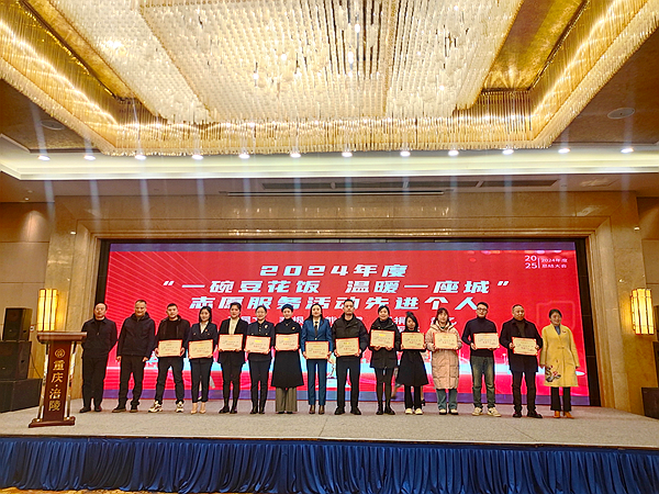 区餐饮商协会党支部书记奚正国宣读“一碗豆花饭·温暖一座城”志愿者服务活动“先进个人”名单,相关领导为获奖者颁发荣誉证书。