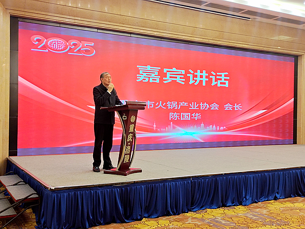 重庆市火锅产业协会会长陈国华在讲话中对涪陵区餐饮商协会的工作给予高度评价,希望协会团结兴会、服务兴会,助力涪陵榨菜走向更广阔的市场。