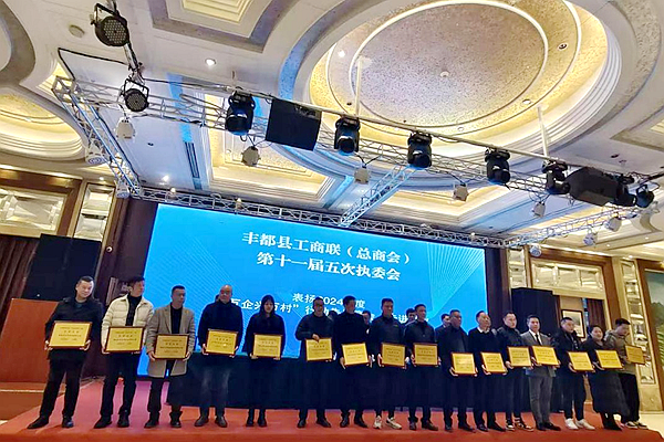 值得一提的是,会议对2024年度“万企兴万村”行动中的优秀商会和优秀企业进行了表彰。在18家获此殊荣的先进企业里,高家镇商会会员企业——重庆绿岛源建材集团有限公司与丰都县联盛石材工艺有限公司脱颖而出。凭借在“万企兴万村”行动中的卓越表现,这两家企业被相关部门授予“万企兴万村”奖牌。这份荣誉,是对他们在乡村振兴事业中所做出突出贡献的高度认可,彰显出高家镇商会会员企业强烈的社会责任感与担当精神。不仅是对过去努力的肯定,更是激励它们在未来继续砥砺前行的强大动力。