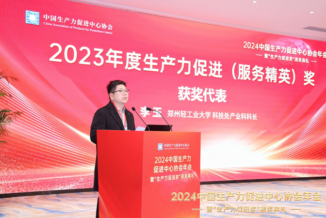 郑州轻工业大学科技处产业科科长李玉作为获奖代表发言