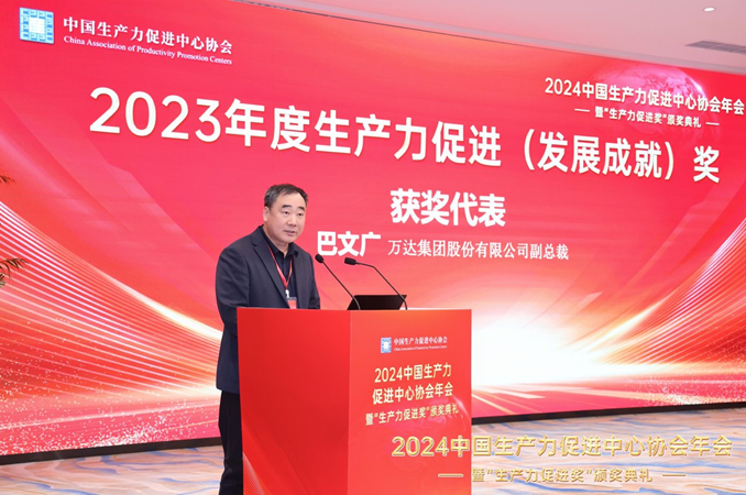 万达集团股份有限公司副总裁巴文广作为获奖代表发言