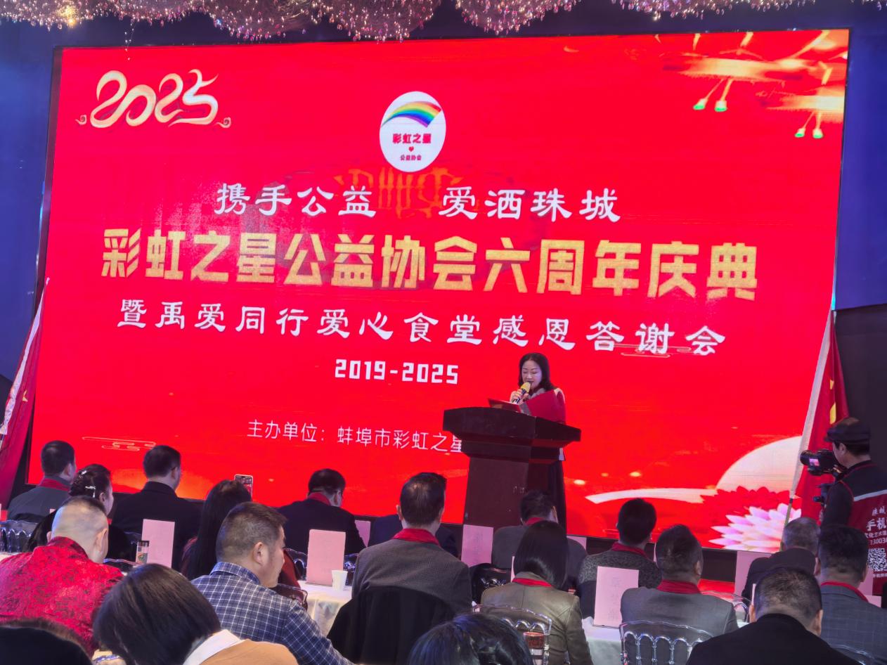 2025年1月19日下午,安徽省蚌埠市新东安主题宴会酒店内气氛热烈非凡,华灯散发着柔和光芒,映照在每一位嘉宾的脸上,处处洋溢着喜悦与期待,蚌埠彩虹之星公益协会六周年庆典暨禹爱同行爱心食堂答谢会在此盛大拉开帷幕,这场盛会不仅是对协会过去六年公益之路的深情回顾,更是一个展望未来、凝聚各方力量,共同书写公益新篇章的重要契机。