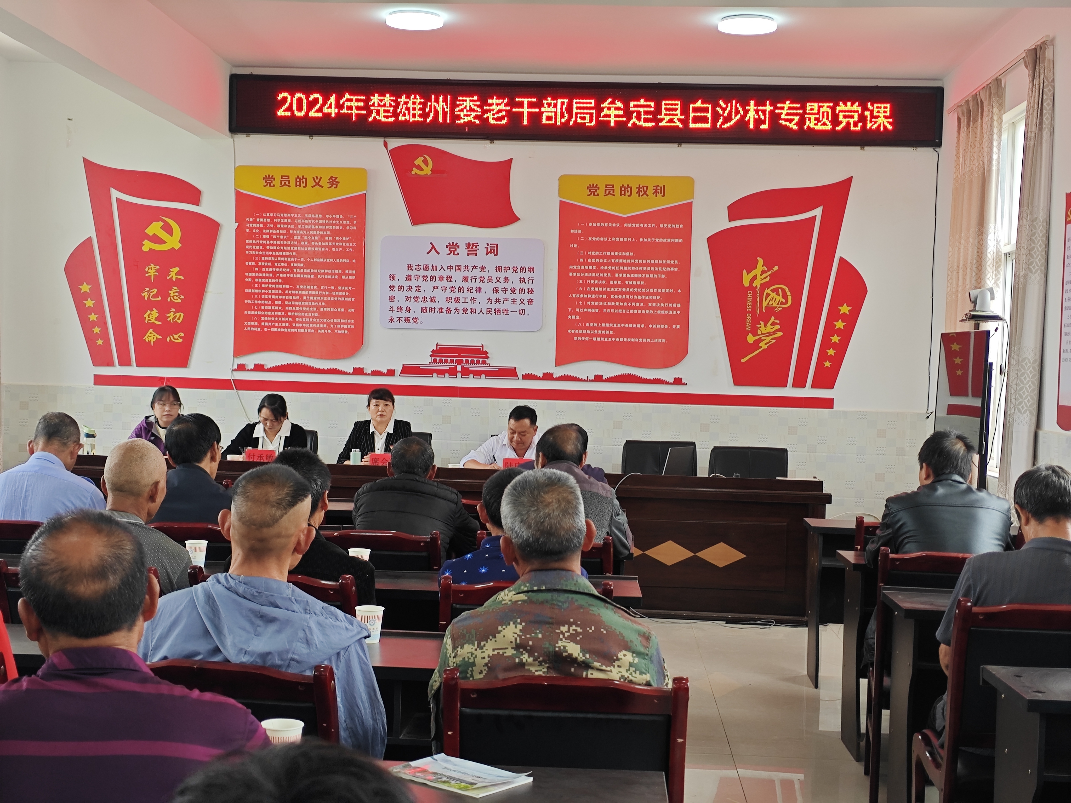图为州委老干部局到戌街乡白沙村讲授专题党课。