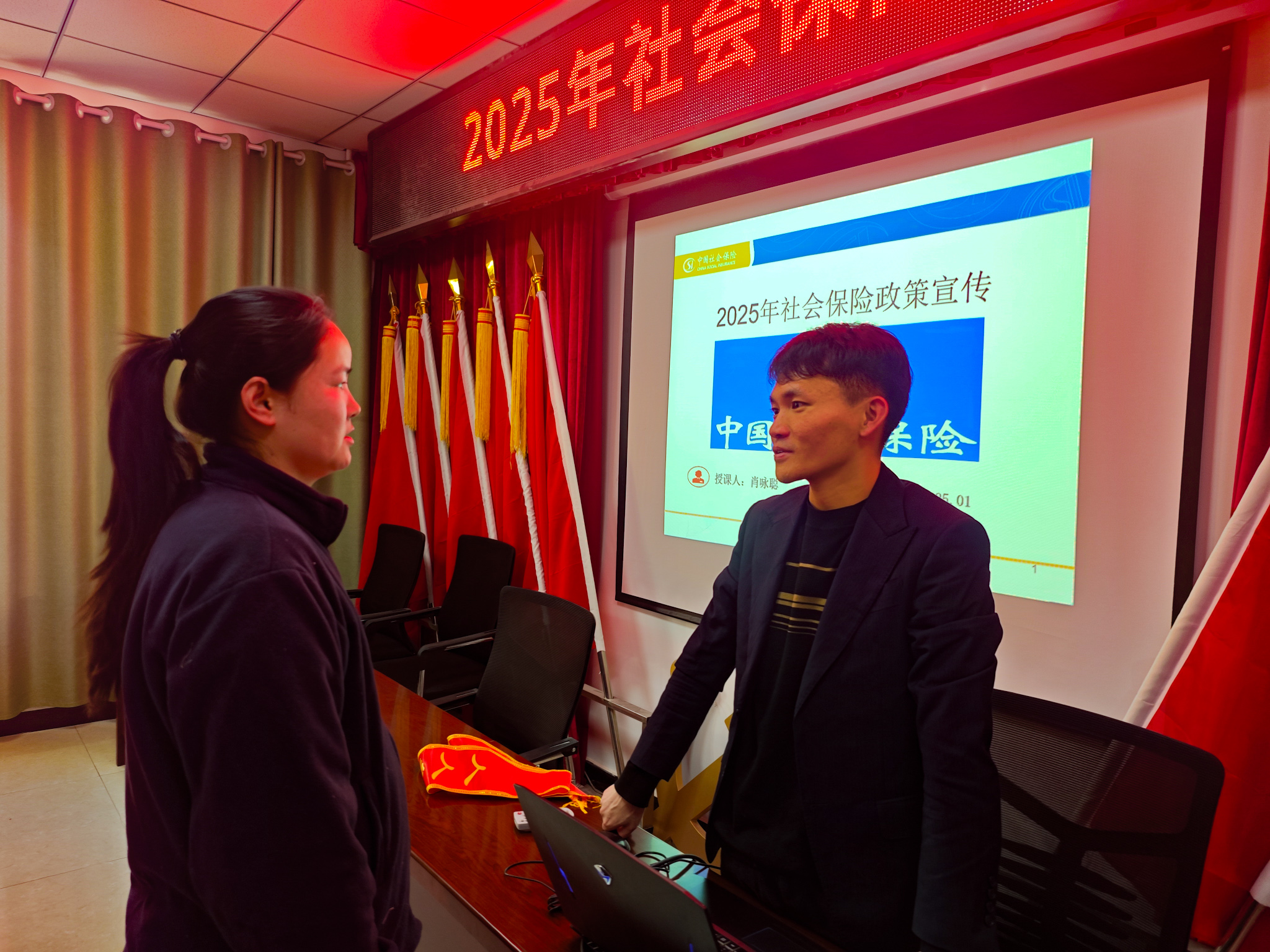 此外,社保工作人员还通过发放宣传册、面对面交流、现场答疑等多种形式,对职工们关心的延迟退休、养老待遇领取条件、资格认证等问题进行了一对一的解答,并手把手指导职工申领电子社保卡,查询个人社保权益,确保每一位参培人员都能清晰了解社保政策、掌握操作方法。