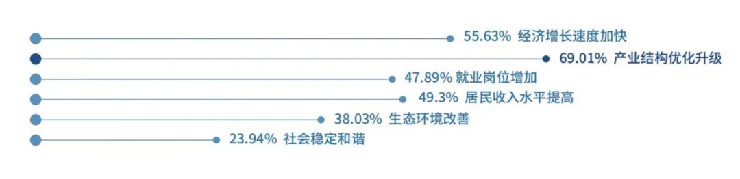 【观察三】因地制宜发展新质生产力取得的成效:受访者普遍认为对于产业结构优化升级作用最为显著,此外,经济增长速度加快也是重要成效之一。