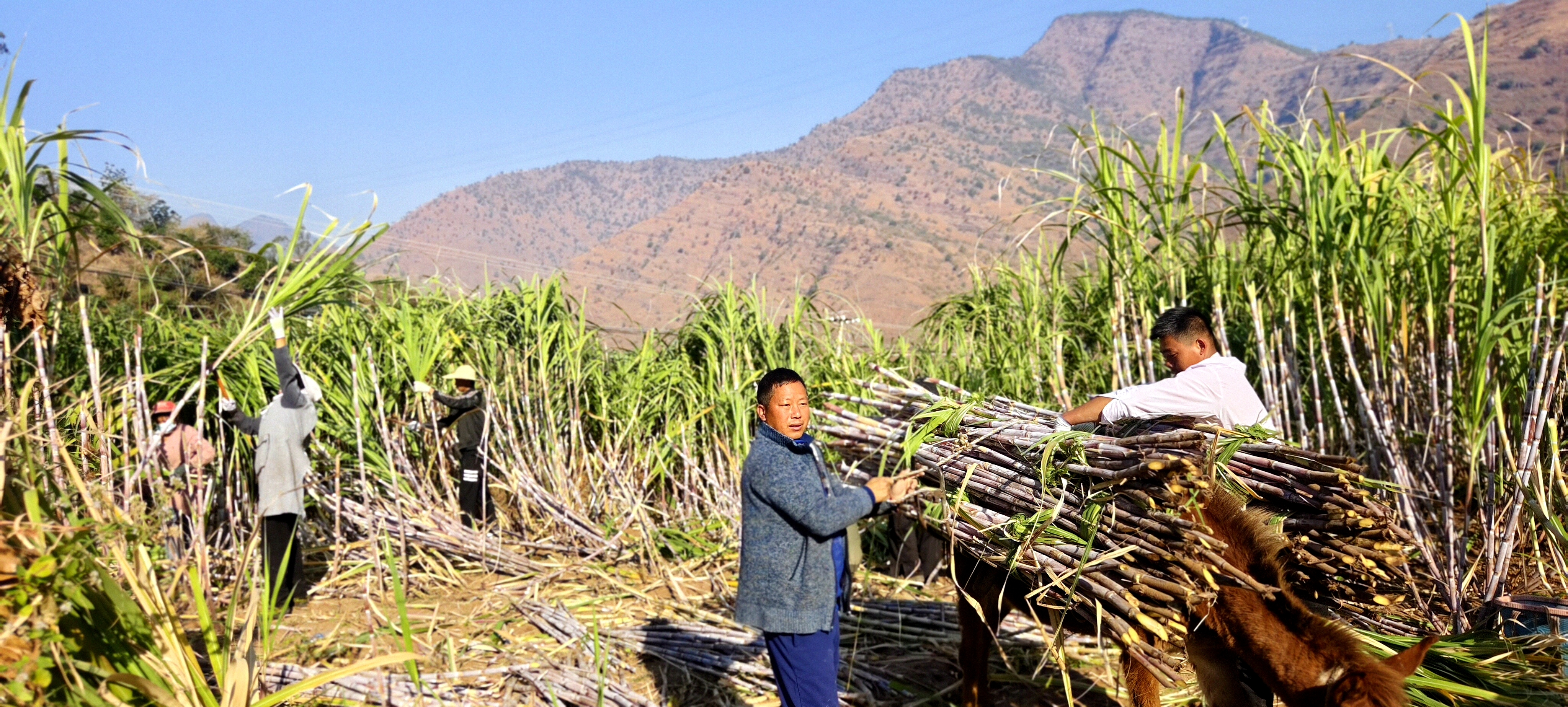 图为腊务堵村民采收甘蔗现场