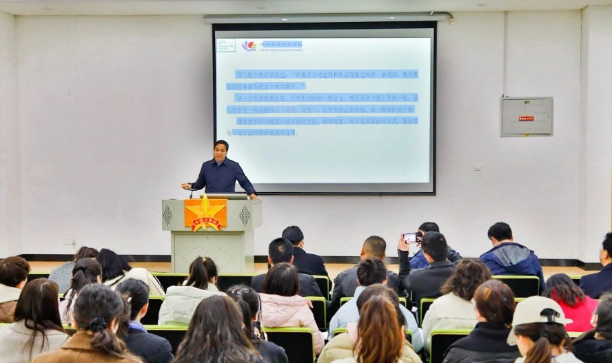 学校杨峰副校长为研修老师带来专题报告《大单元整体学习学程创编及使用》。并详细介绍了271课堂模式下大单元整体学程的创编思路、过程以及使用方法。