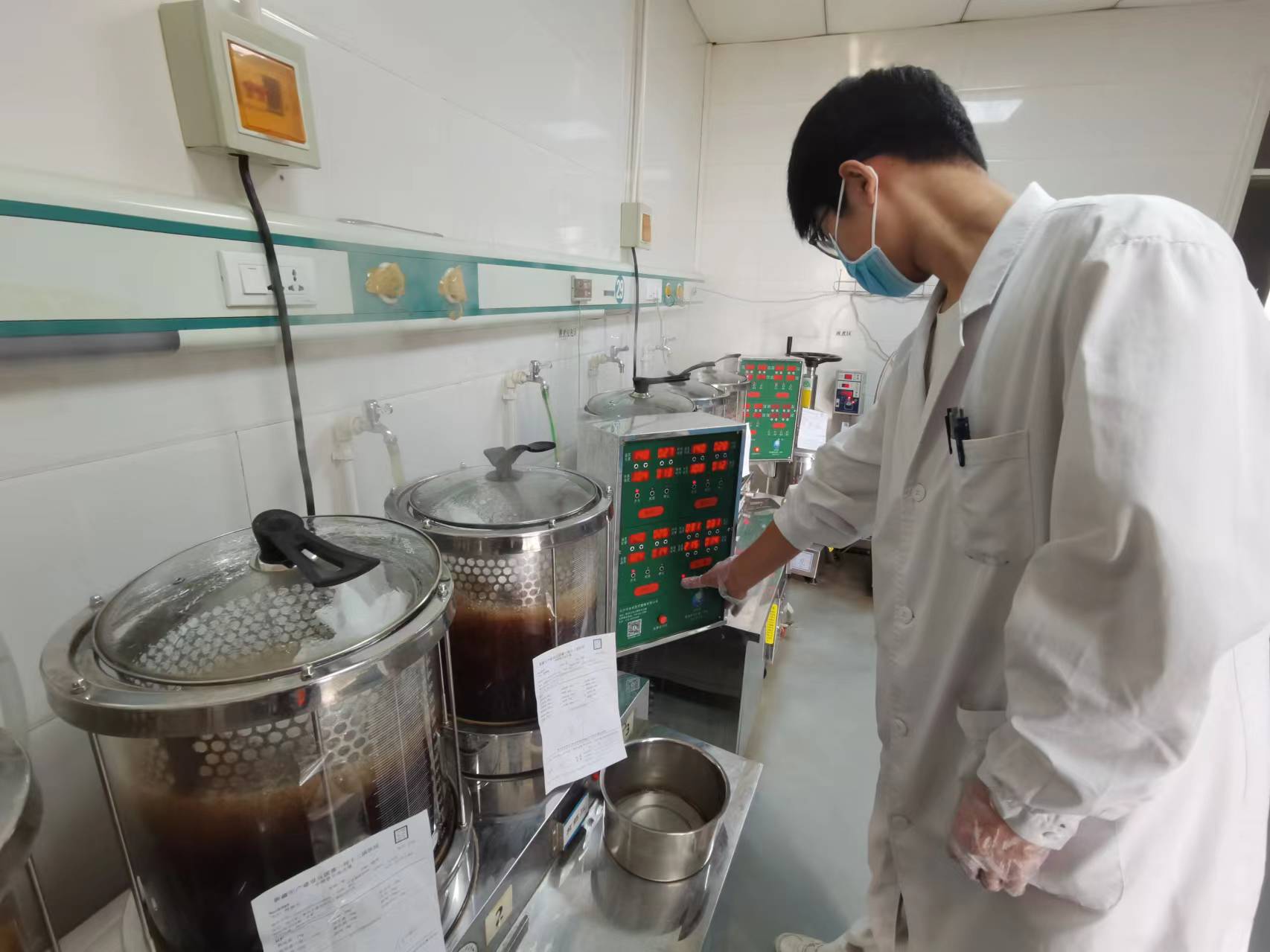 图为十二团中医馆药师在煎药房为患者煎煮中药。