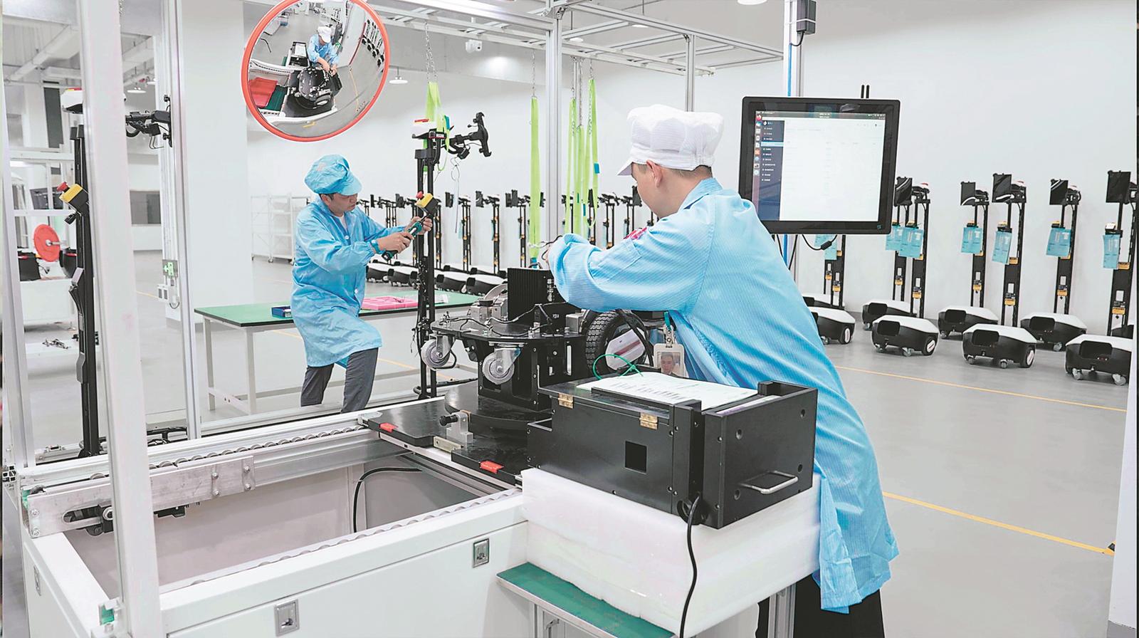 2月27日,星河数控科技(铜陵)有限公司的生产车间内,技术人员正在测试自主移动机器人。该企业以生产物流、医疗、清洁等机器人为主,产品主要出口日本、东南亚地区。