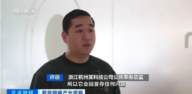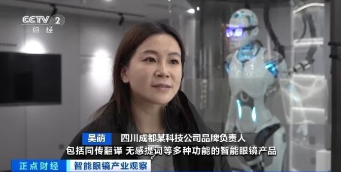 浙江杭州某科技公司公共事务总监许诩:因为(智能眼镜)接了(AI)大模型,所以它会回答你问题,如果对面一个外国人讲外语,我镜片里面显示的就是汉字,现在(智能)眼镜每年出货大概在10万台这个量级,平均年复合增长率(为)120%。