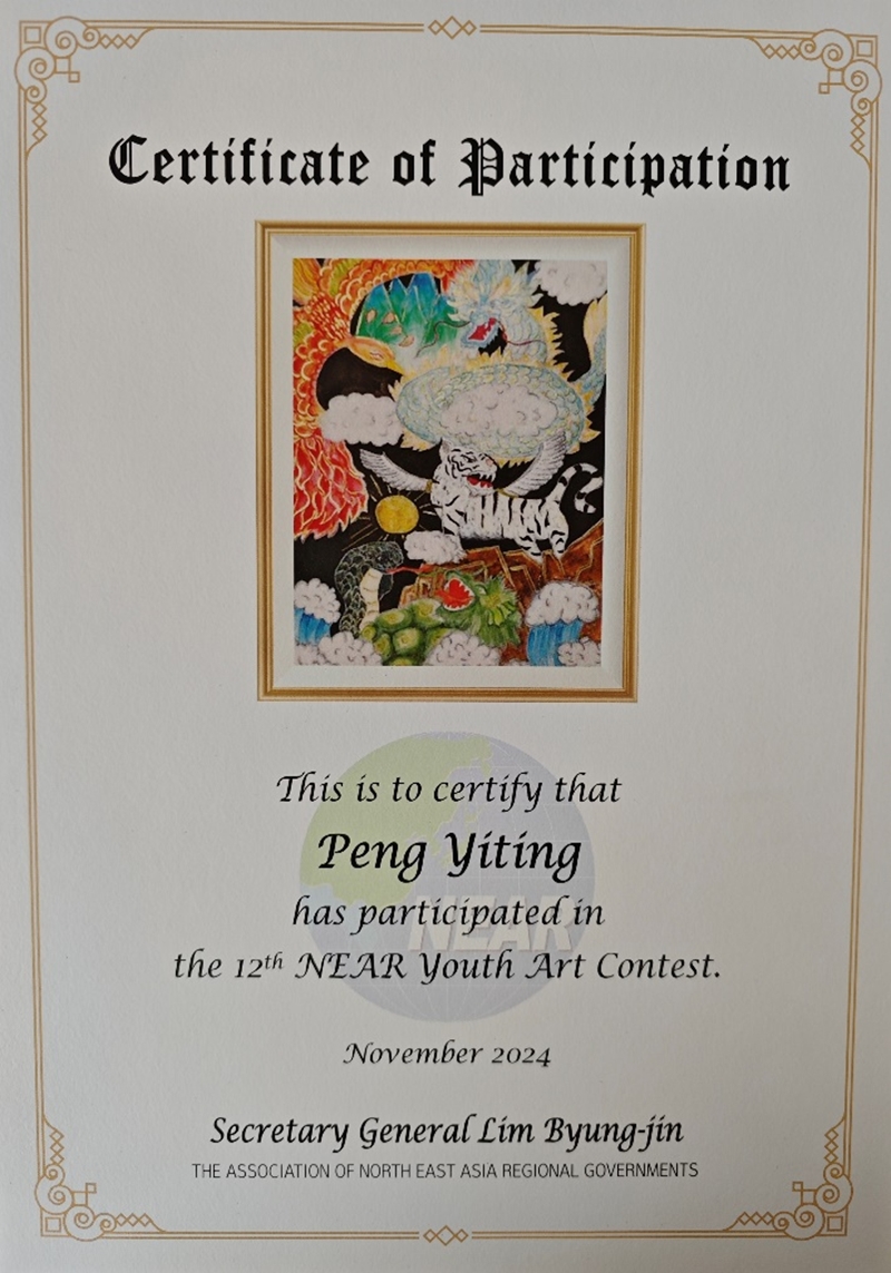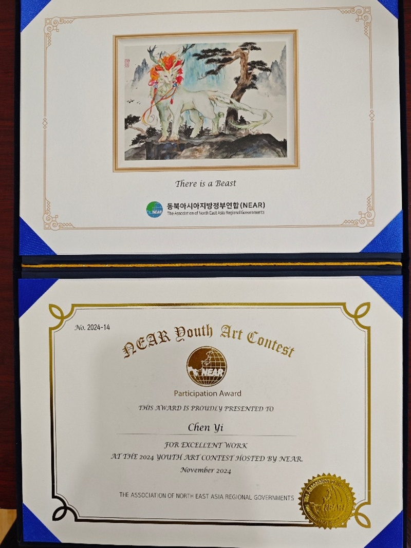 据了解,第十二届NEAR青少年优秀绘画作品征集活动聚焦于提高东北亚国家青少年对本地区社会、经济、文化的认识,旨在增强文化认同感,推动东北亚地区地方青少年间的文化交流,增进彼此对邻国的了解。本次活动以“我们地区/国家的神话故事”为主题,广泛面向东北亚地区年满12-18岁的青少年征集绘画作品。中国、日本、韩国、蒙古、俄罗斯五国共选送678幅精心创作的作品参与此次活动,竞争异常激烈。最终,155幅作品脱颖而出获奖,潢川一中初中部学生的作品能够位列其中,实属不易。