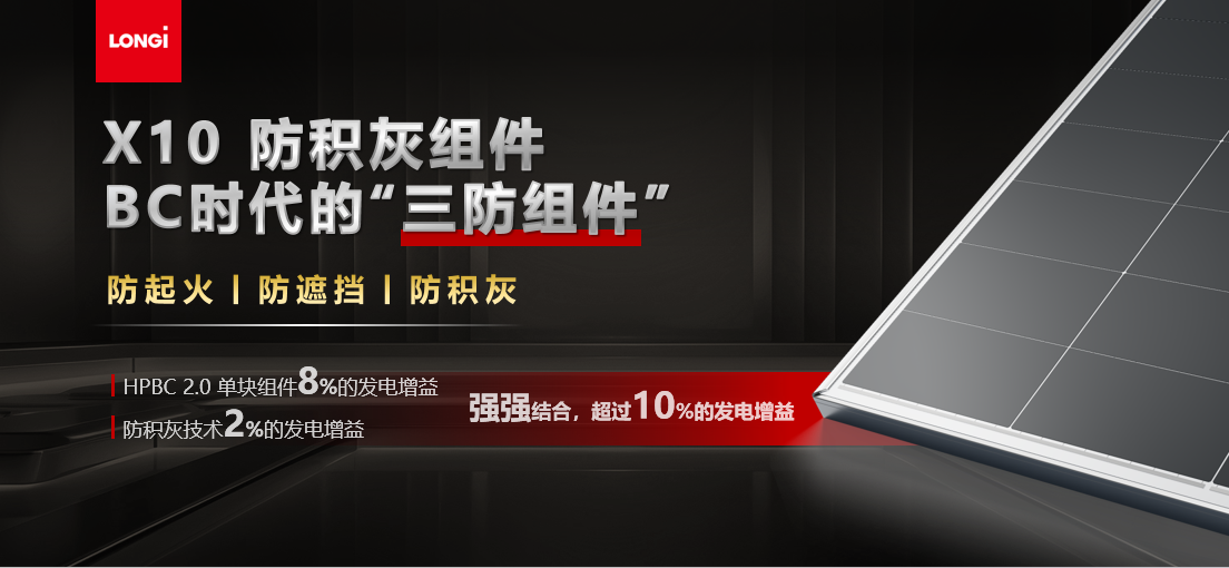 3月5日,第二十届中国(济南)国际太阳能利用大会暨第四届中国(山东)新能源与储能应用博览会上,隆基绿能全新发布Hi-MOX10防积灰组件。该组件最高功率达670W、转化效率高达24.8%,不仅集成了HPBC2.0的技术优势,更以“防起火、防遮挡、防积灰”的“三防”功能,重新定义了分布式光伏的价值与安全标准。