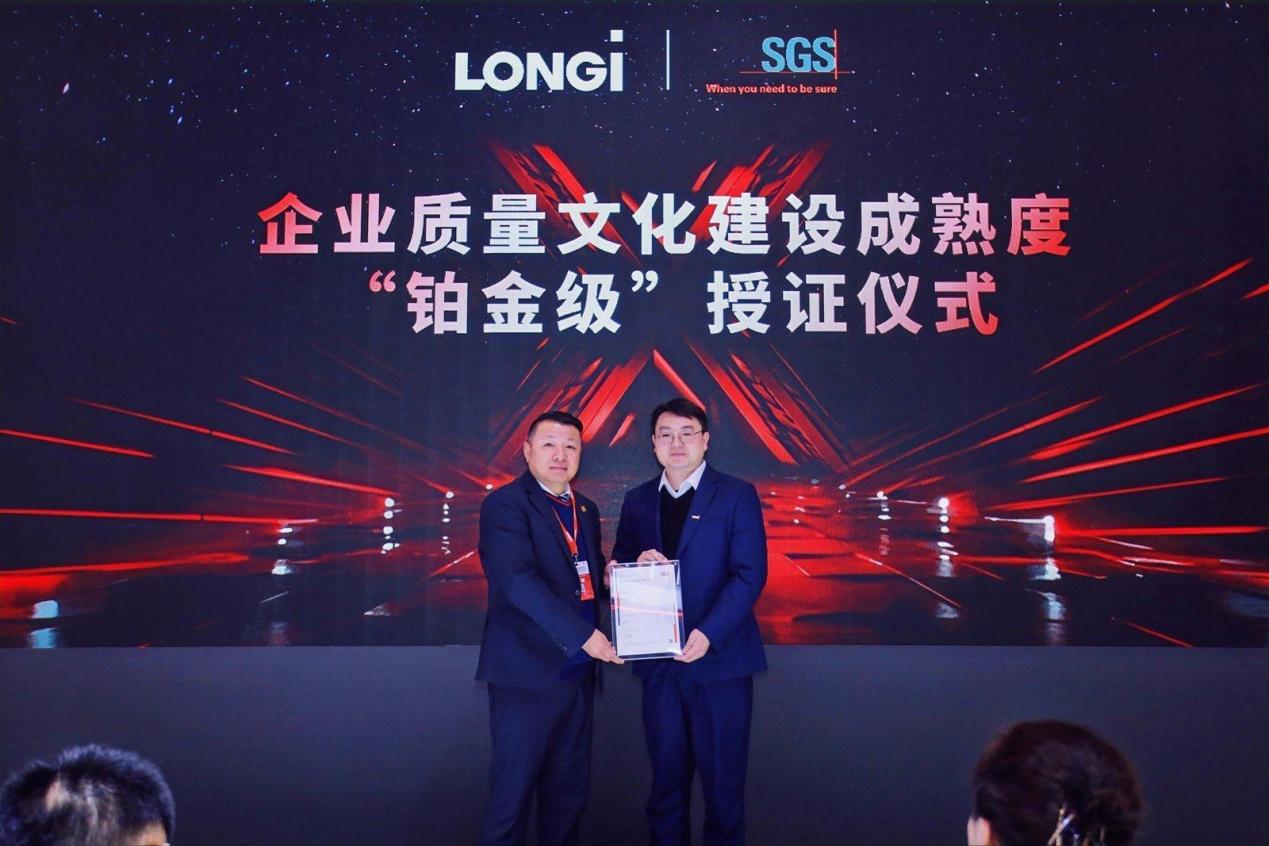 发布会上,隆基荣获国际公认的测试、检验和认证机构SGS颁发的行业首张GB/T32230-2015《企业质量文化建设指南》铂金级证书。这一认证彰显了隆基在质量管理与持续改进上的卓越实力,为光伏行业树立质量管理的新标杆,更助力了中国光伏从“世界制造基地”走向“全球标准的引领者”。