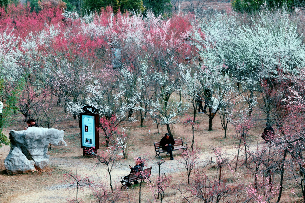 近日,河南省济源市气温回升,梅花盛花期。春暖花开的美景引市民们纷纷走出家门欣赏大自然美景。