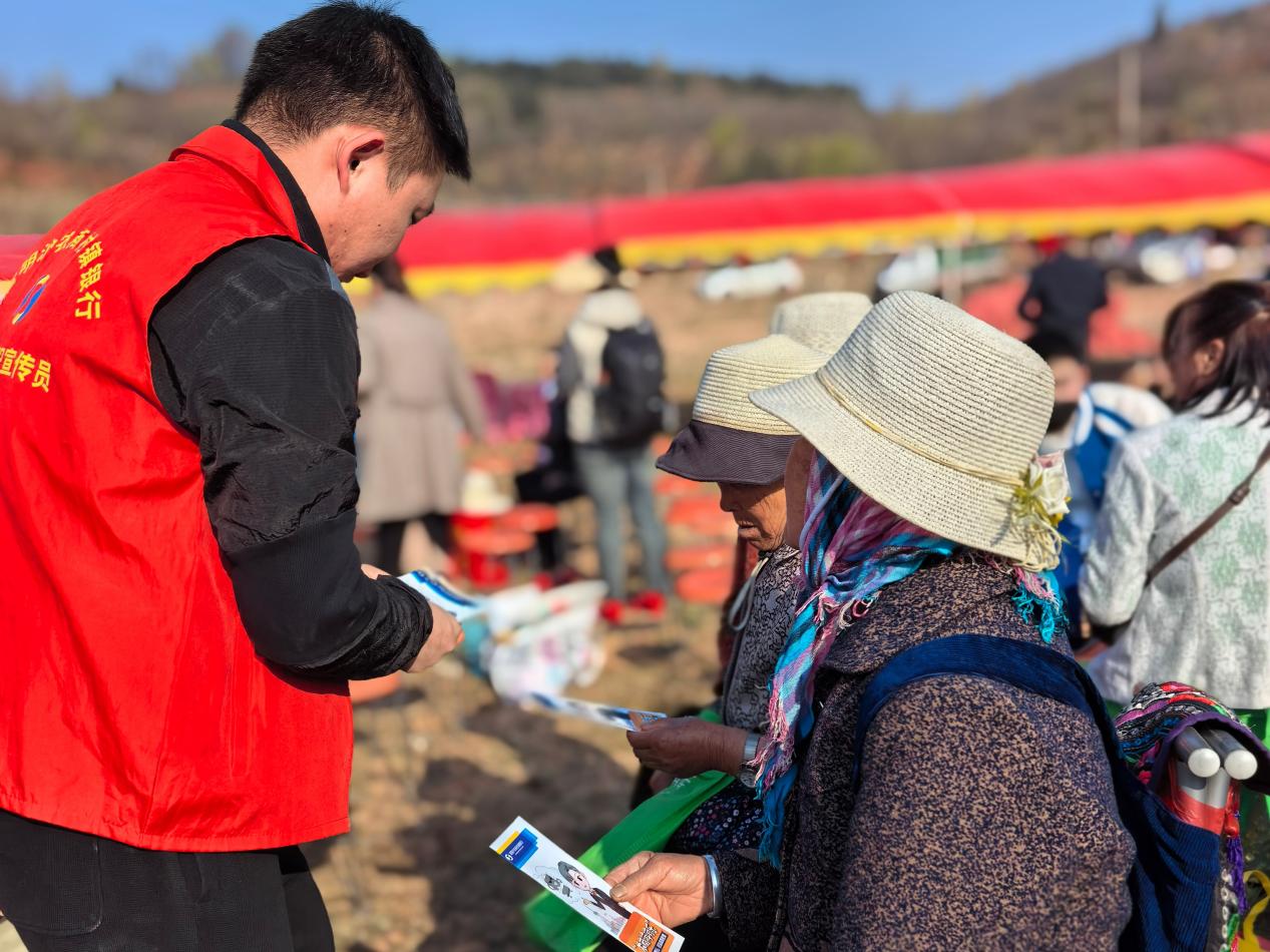 活动现场,嵩明沪农商村镇银行的工作人员身穿金融知识宣传员的红马甲,面带微笑,穿梭在熙熙攘攘的人群中,向参加活动的人群发放精心制作的宣传折页。宣传内容涵盖了防范金融诈骗、个人信息保护、合理使用金融产品等多个与日常生活紧密相连的金融知识板块。