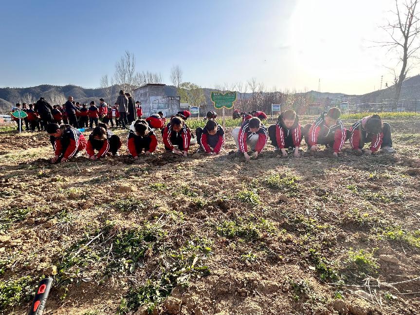 作为乡村学校劳动教育的重要载体,该校的劳动基地已成为学生感知自然、锤炼品格的重要实践课堂。校长陈东介绍,为了深入落实《中共中央国务院关于全面加强新时代大中小学劳动教育的意见》、《河南省乡村学校“绿色点亮生活,健康护佑生命”主题实践活动实施方案》的精神,近年来该校在教育局、中心校的指导下,把课后服务与劳动教育相结合,以“劳动+”的模式开展特色课程,融合语文、数学、英语、生物、科学、思政等课程,既提升了学生综合实践能力,更传递乡土情怀与责任担当。蒲公英的生命力与育人理念高度契合,学校希望通过这样的活动,让乡村孩子从小树立‘向下扎根、向上生长’的信念。