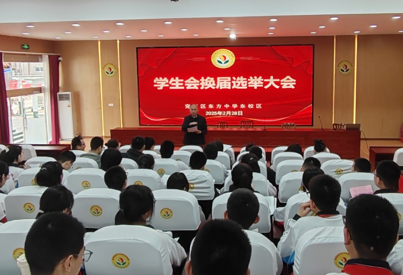 为进一步推动学校学生会工作的稳步发展,充分发挥学生会的组织优势,同时加强学生干部选拔工作的民主化、科学化建设,及时为学生会补充新生力量,近日,兖州区东方中学东校区在综合楼多功能厅召开新一届学生会换届选举大会。