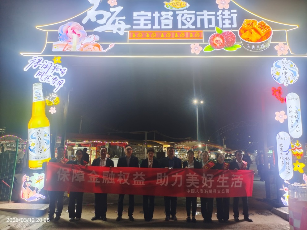3月12日晚8时,云南省石屏县宝塔夜市街热闹非凡,一场烟火气与金融知识碰撞的金融盛宴在此精彩上演。3月正值“3.15”国际消费者权益日,消费者权益保护在金融行业至关重要。为推动民族经济发展、维护民族稳定、践行企业责任,中国人寿保险股份有限公司石屏县支公司与中国人寿财产保险股份有限公司石屏县支公司走进宝塔社区,在宝塔夜市街创新开展“宝塔夜市街+金融教育”模式的消保宣传活动。