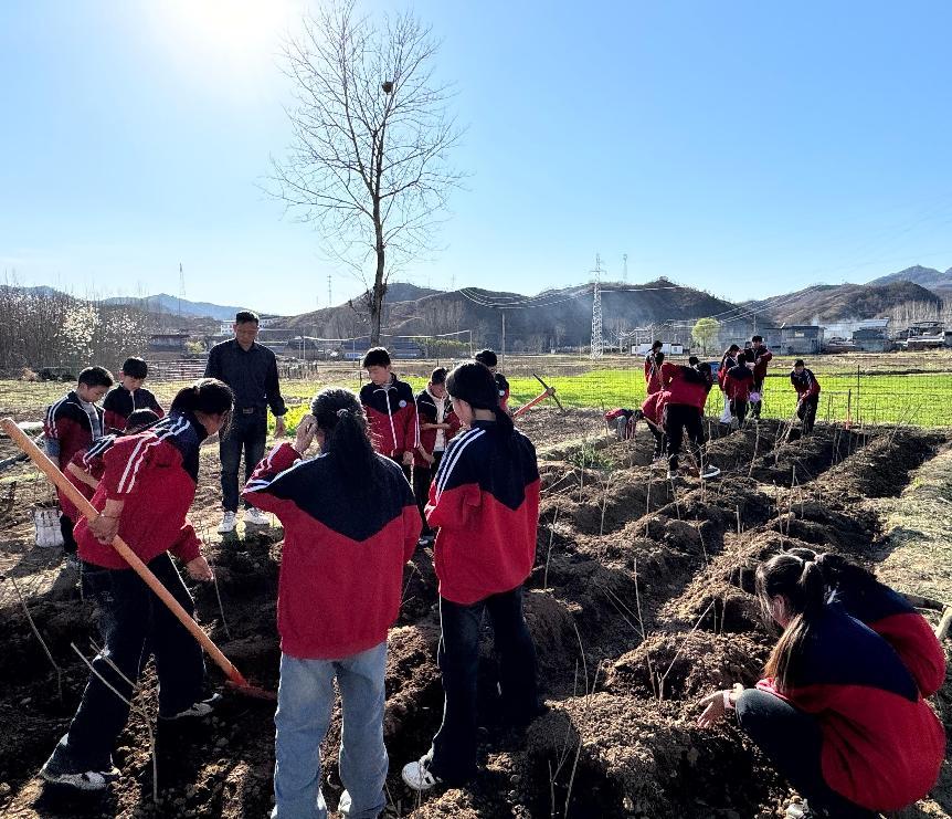 春分时节,草木待发。3月20日,河南省南召县马市坪乡西大庄小学劳动社团的50余名学生走进学校百草园劳动教育实践基地,开展种植实践活动。孩子们在教师的指导下翻土、播种、浇水,亲手栽下金银花、山楂、连翘等药苗,将课堂延伸至田间地头。这是该校以劳动教育为抓手,在《河南省乡村学校“绿色点亮生活,健康护佑生命”主题实践活动实施方案》指导下,探索乡村教育“五育融合”新路径的生动缩影。