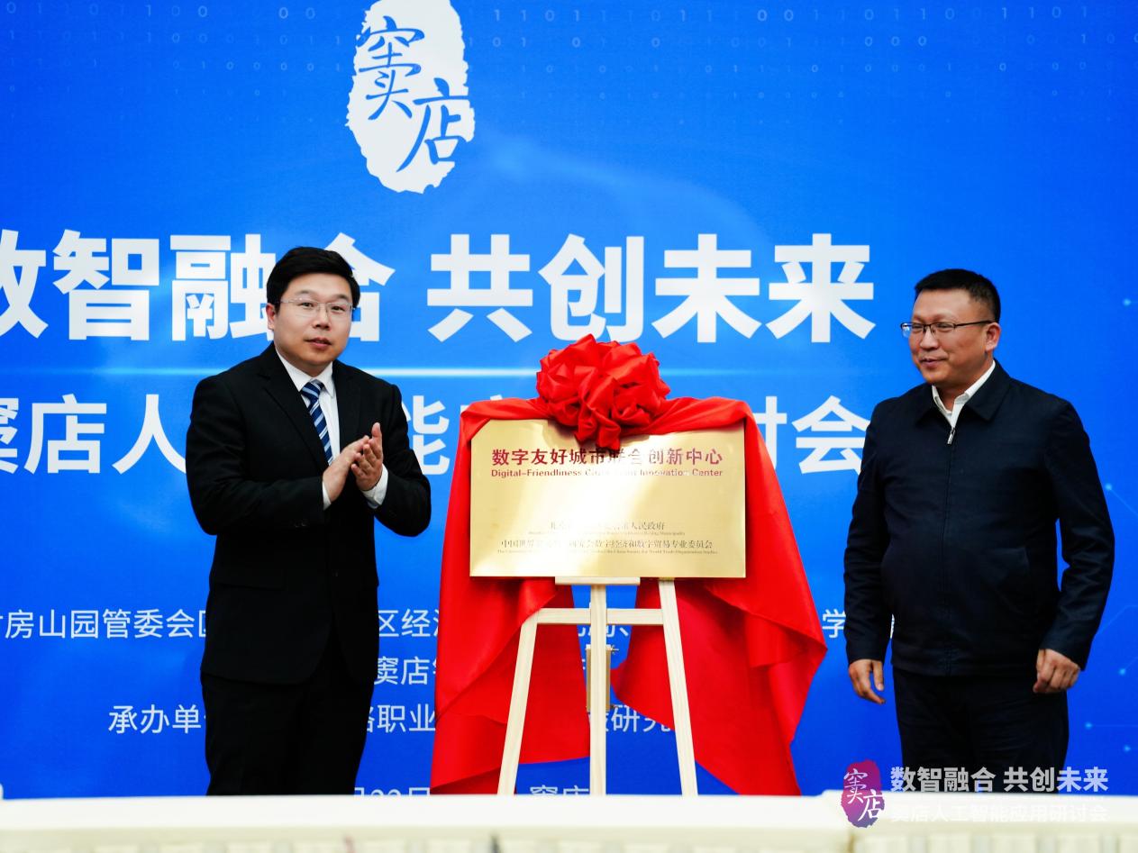 研讨会期间,举行了“数字友好城市联合创新中心”与“北京窦店人工智能应用孵化基地”的揭牌仪式。同时,窦店镇人民政府组建了“窦店人工智能应用专家委员会”,并为相关专家颁发了聘书。