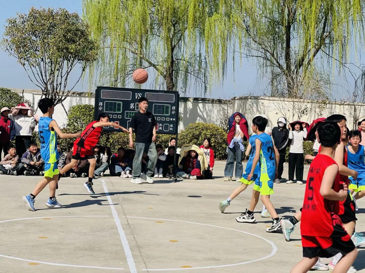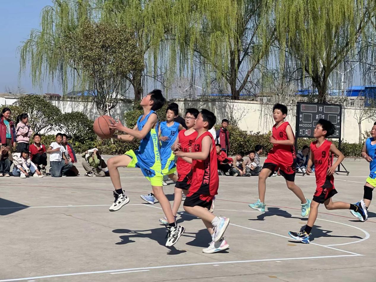 近日,安徽省怀远县双桥集镇刘碾小学的校园里呐喊声、欢呼声此起彼伏,一场扣人心弦的校园班级篮球赛在此激情上演,对战双方为赤焰队和暴风队。本次赛事作为学校落实体育“三个一”工程与“五育并举”理念的重要举措,在“双减”政策的大背景下,极大地丰富了学生课余生活,激发了学生参与体育运动的热情。