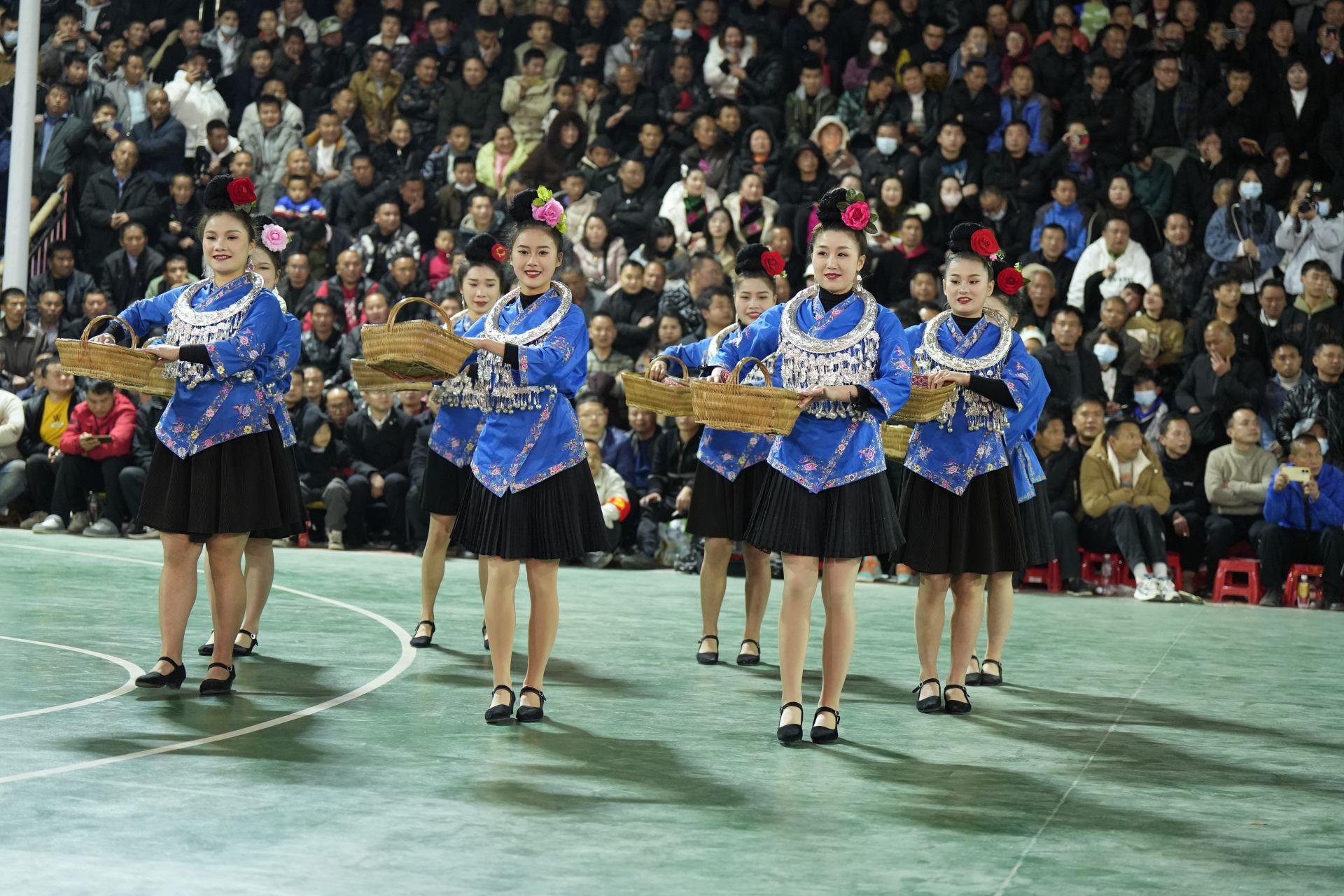 融入体育竞技文化、民族非遗文化、乡村乡土文化。在竞技体育文化的基础上,融入民族非遗、乡村乡土文化,比赛间隙把台江苗族飞歌、多声部情歌、反排木鼓舞等民族艺术作品搬到赛场,让民族歌舞表演者成为“篮球宝贝”。