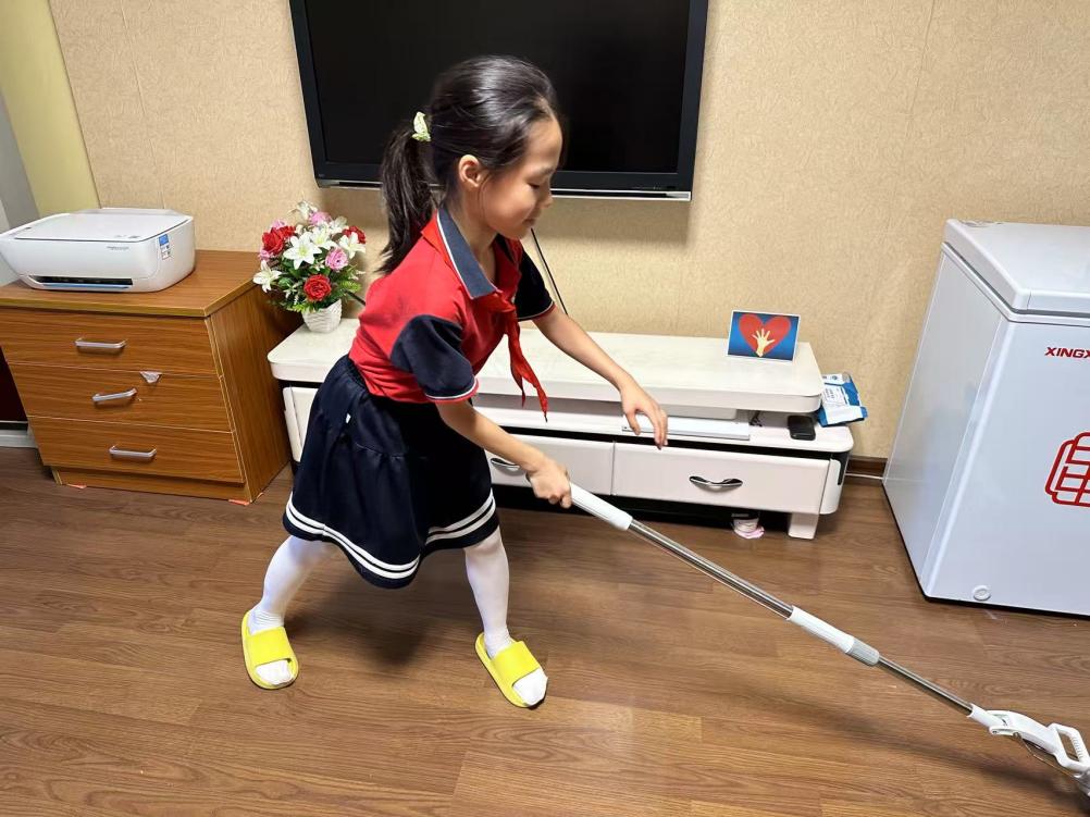 在班级劳动中,陈彦彤总是冲在前面,主动承担打扫教室、擦玻璃等任务。回到家中,她也是父母的得力小助手,帮家人做家务,展现出良好的品德和社会责任感。