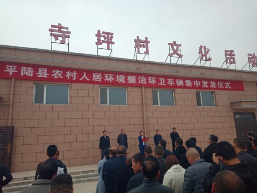 为改善农村人居环境,进一步提升垃圾清运效率,建设美丽宜居乡村。平陆县在圣人涧镇寺坪村举行农村人居环境整治环卫车辆集中发放仪式,县委副书记杨虹出席仪式并讲话,副县长张华峰主持仪式,县农业农村局及相关乡镇、国机集团中国一拖集团特专车分公司负责人参加发放仪式。