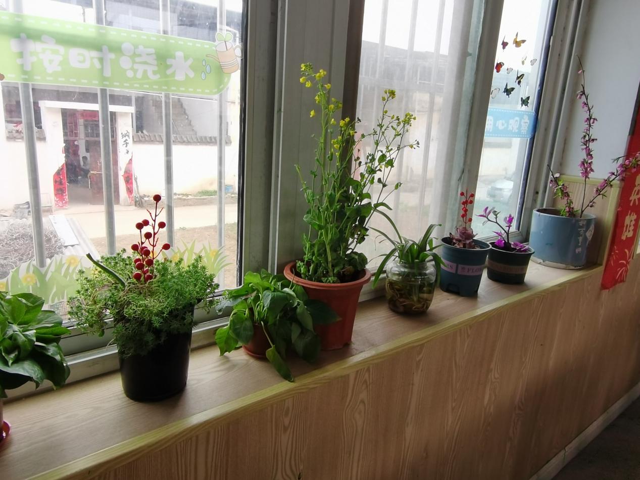 “四化”建设过程中中,各班师生化身“空间设计师”,结合学校特色与乡村资源打造个性化教室:四年级的图书角各类图书琳琅满目,又增设了“绿色科技”专题书架,引导学生关注生态保护与可持续发展;三一班在教室墙角精心打造的‘莫奈花园’,上有罗曼,下有草坪,百余盆(支)绿植和插花,姹紫嫣红,已经成了同学们的打卡地……一年级教室里悬挂的贝壳、口服液瓶子等制作的各种风铃五彩缤纷在窗台摇曳,时静时动;五一班从门口到室内遍布各种励志标语,无处不在营造一个积极向上的班级氛围;六一班开辟“劳动成果展示墙”,陈列着师生编制、泥塑等工艺品,古朴典雅与绿意盎然的的绿植遥相呼应。