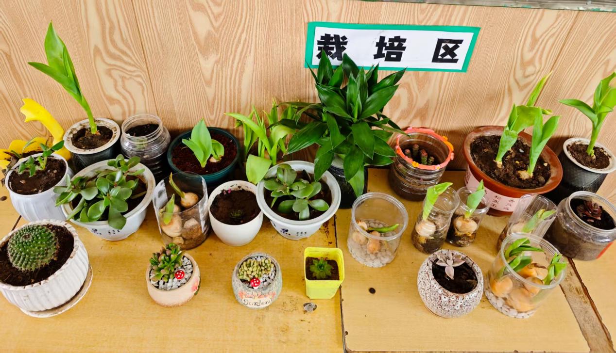 该校紧扣“劳动育人”核心,将“四化建设”融入日常管理工作中。净化夯基础:学生每日轮值清扫教室、整理图书角,强化“一屋不扫何以扫天下”的责任意识;绿化添生机:师生共育盆栽、搭建“班级小菜园/小花园”,从播种到收获全程实践生态理念;美化显匠心:利用秸秆、落叶、塑料瓶子等乡土材料制作墙饰,让传统文化与环保创意碰撞;文化润心灵:设置“红色故事角”“乡土文化展板”,讲述乡村振兴中的榜样事迹。三年级班主任杨洋表示:“擦玻璃、修剪绿植都是劳动课,孩子们在动手中学到了课本外的知识。”