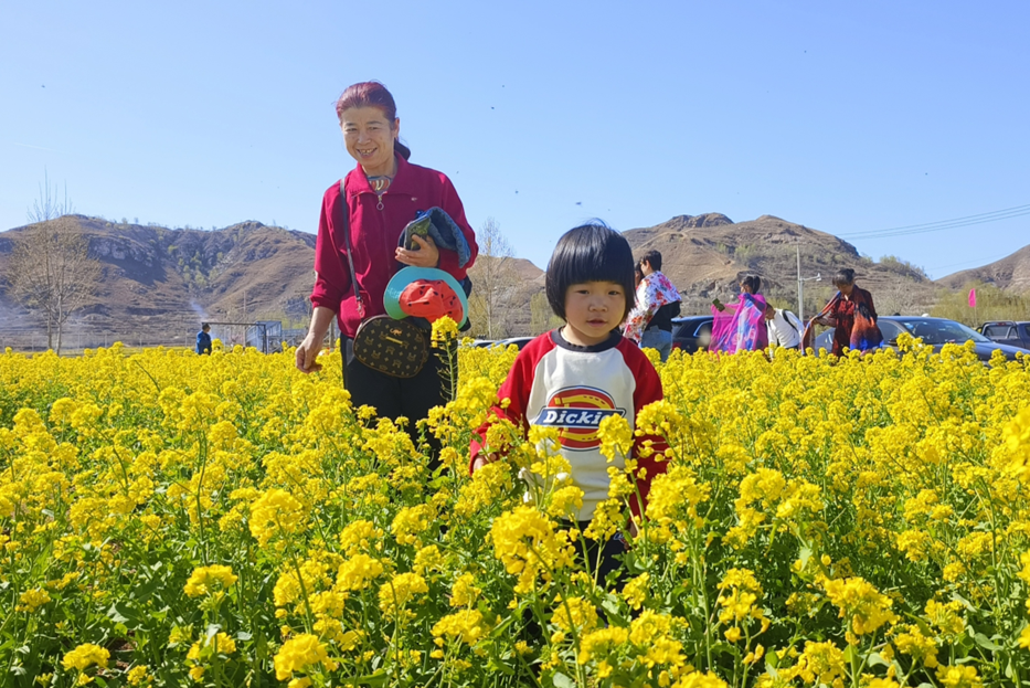 村头,“花潮庙会”大型宣传牌分外醒目,每天两三千名游客慕名而来。漫步山前油菜田,闻香观景,拍照留念。姑娘们身着汉服,袅袅婷婷,与金黄的油菜花相映成画。孩子和老人荡秋千、识野菜,手握锄头体验农事。自驾、骑行者泊好房车、支起帐篷,尽享野炊乐趣。