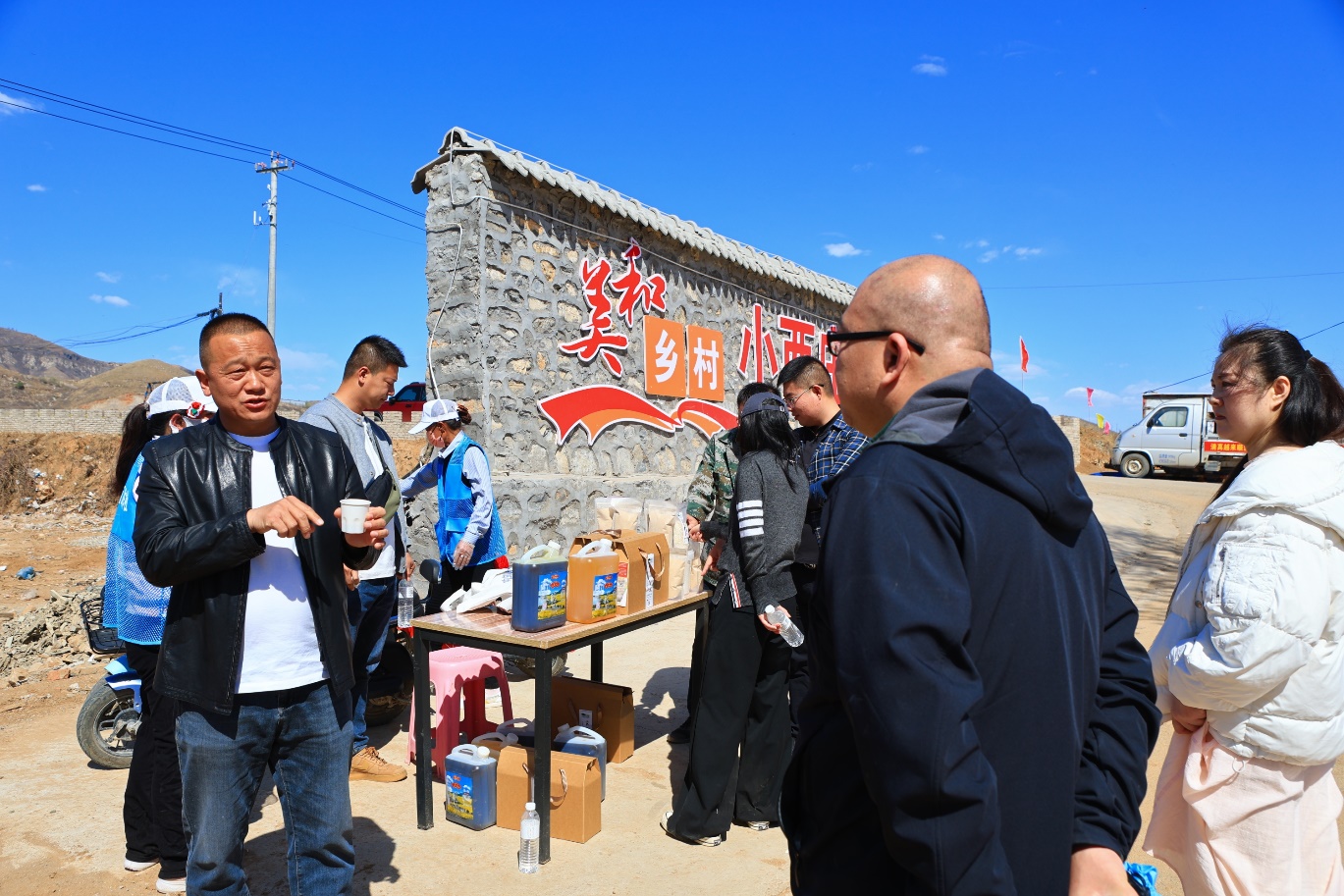 路旁临时市场内,数十个买卖摊位错落有致,玉米糁、菜籽油、粉条、大枣、蜂蜜、农家炖菜,色香俱全。客人们精心选购,欢笑声不绝于耳。