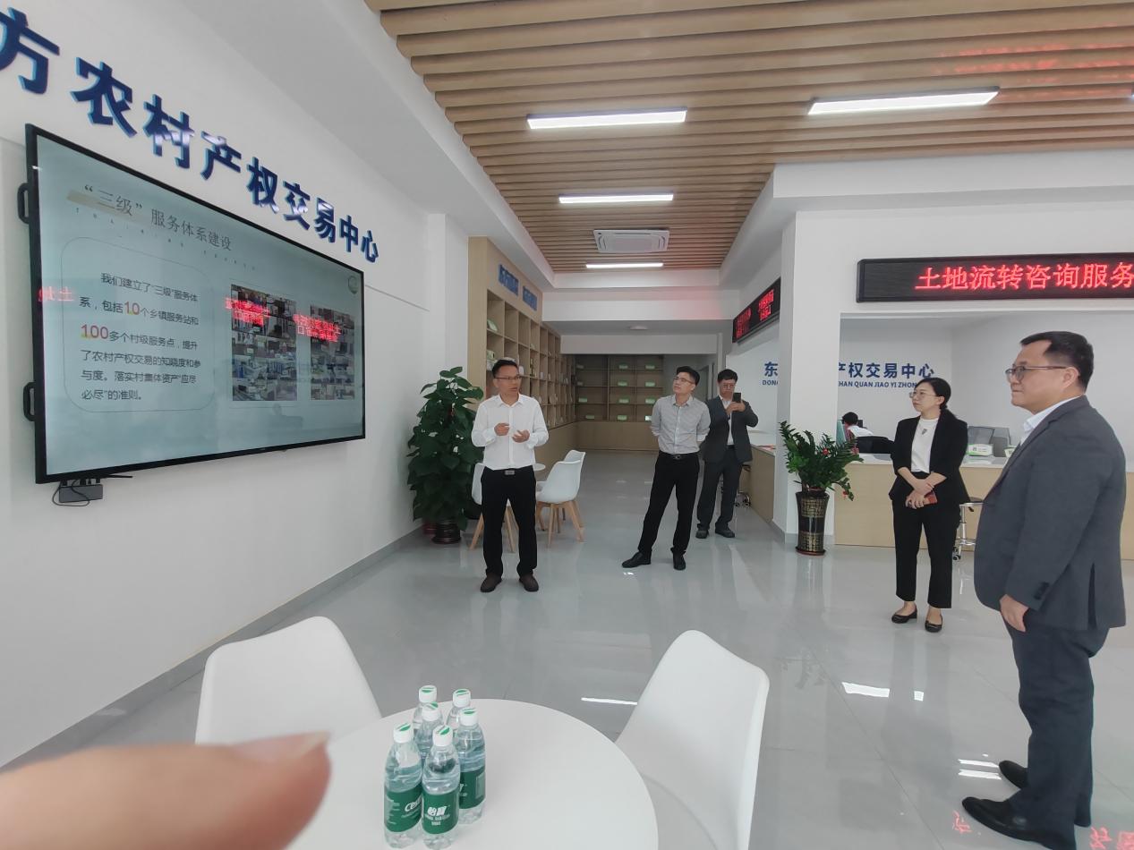 在调研过程中,东方农交中心总经理孙福街对中心的工作情况进行了详细介绍。李晓刚董事长在听取汇报后,对东方农交中心推行的土地流转“一站式办证金融协同”模式给予了高度肯定。他指出,该模式为农村土地流转工作树立了优秀典范,在优化农村土地流转流程的同时,也为银行贷前、贷中、贷后的风险管理提供了坚实保障,切实提升了金融服务农村经济的安全性与稳定性。目前,海南农商银行东方支行借助东方农交中心设立的“土地经营权抵押金融服务窗口”,已为多家企业和农户提供金融授信额度累计达1420万元。