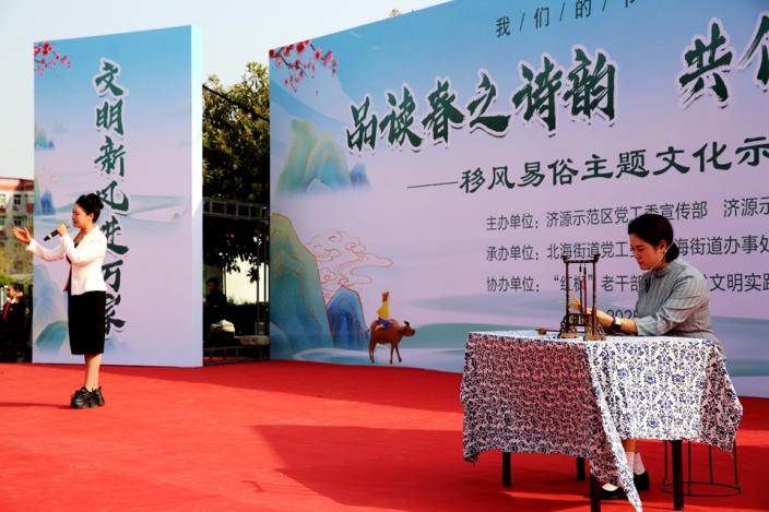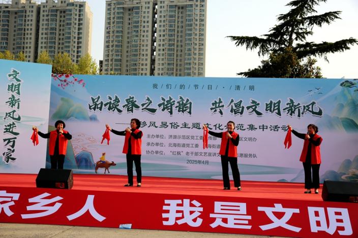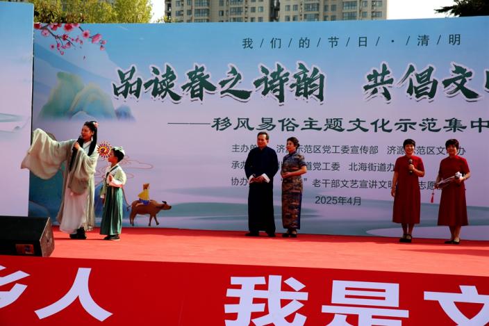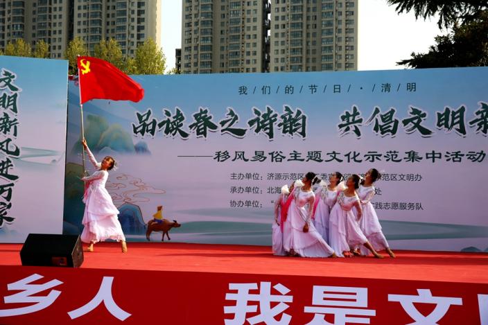 4月3日,由河南省济源示范区党工委宣传部、济源示范区文明办共同主办的我是愚公家乡人我是文明实践行动者——“我们的节日·清明”济源示范区“品读春之诗韵·共倡文明新风”移风易俗主题文化示范集中活动在河南省济源市博物馆楼前广场举行。