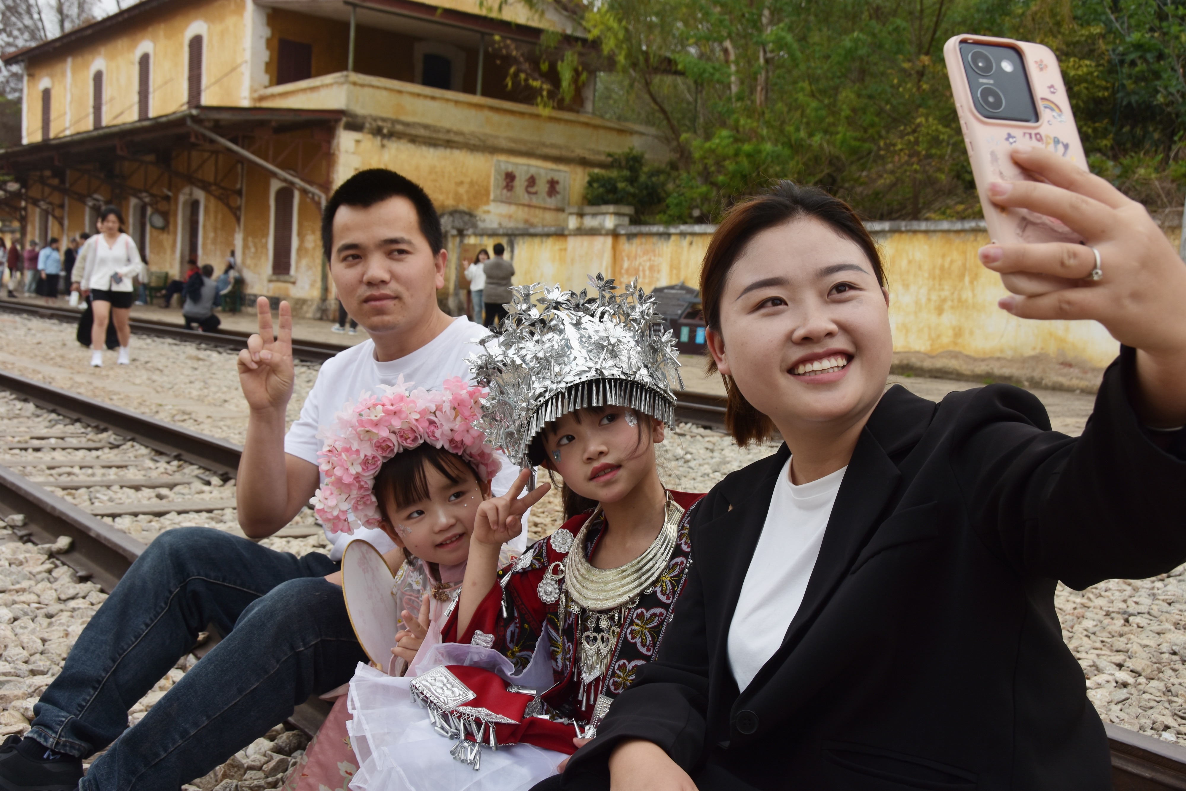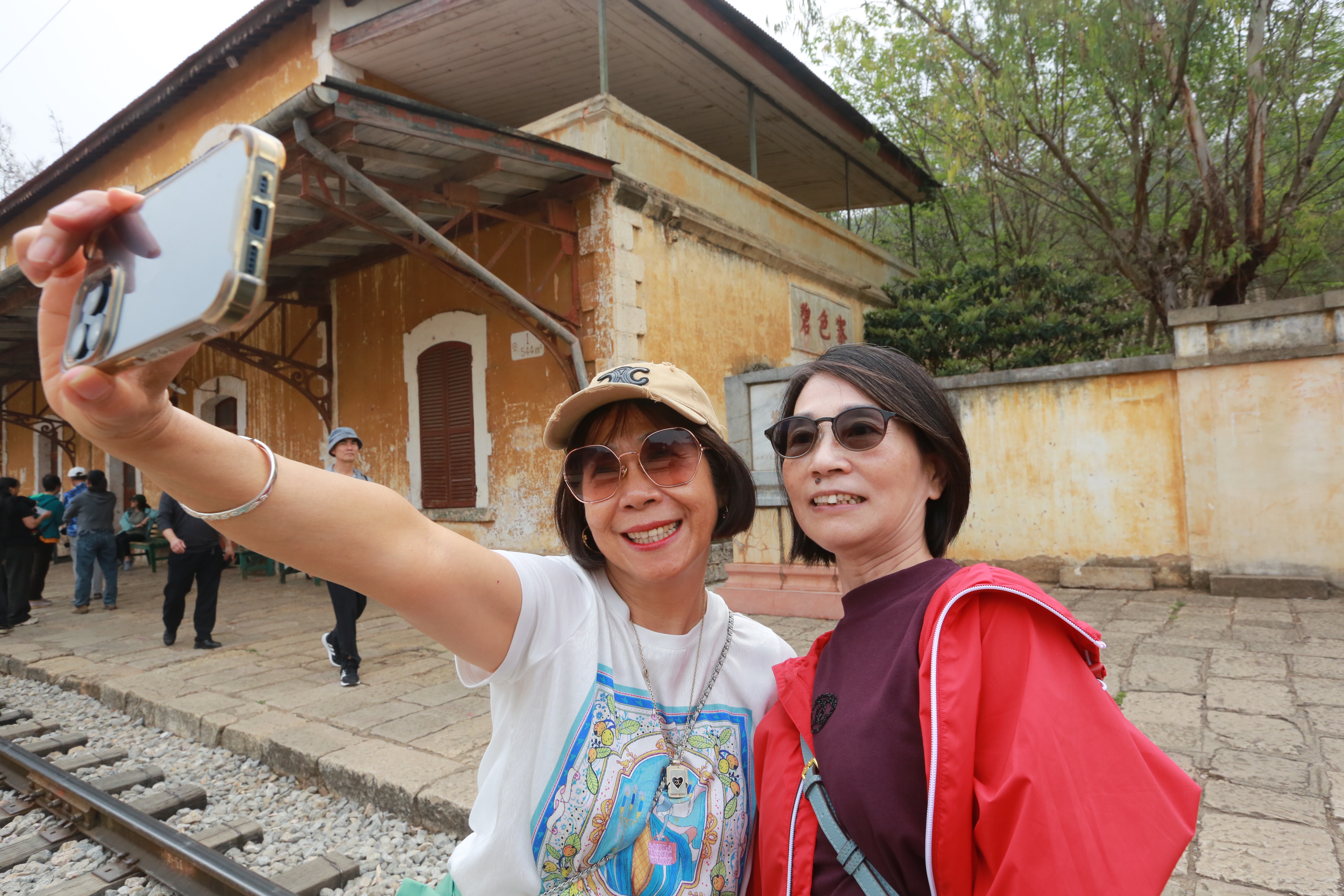 当日是清明小长假第二天,不少游客来到云南省红河哈尼族彝族自治州蒙自市碧色寨滇越铁路历史文化公园游玩。