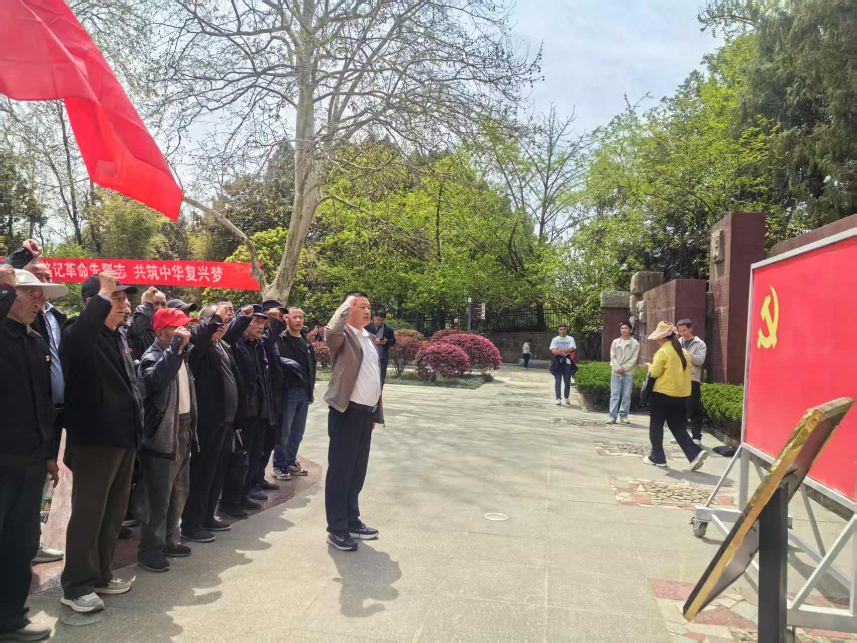 为庚续红色血脉,锤练党性修养,4月6日,河南省正阳县傅寨乡双台村组织32名党员及入党积极分子,前往鄂豫皖苏区革命根据地,开展“缅怀革命先烈,凝聚奋进力量”主题教育活动。