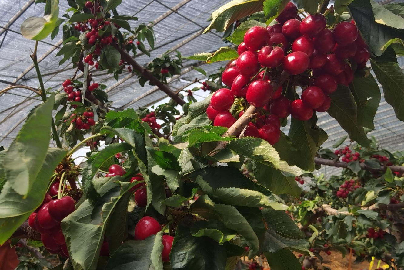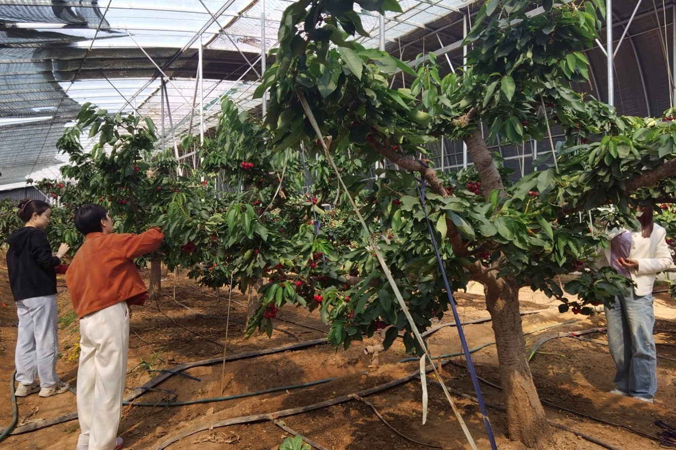 西釜山村樱桃基地引得众多游客采摘打卡。