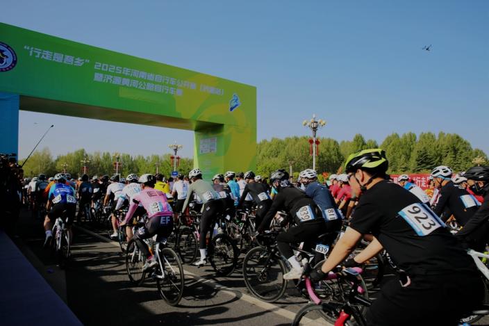 自2023年以来,“行走是吾乡”河南省自行车公开赛已成为中原大地最具影响力的全民健身品牌赛事之一,济源连续三年成为首站发车。(贾书琛摄)