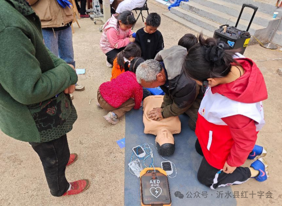 近日,山东省临沂市沂水县红十字会来到夏蔚镇云头峪村“同心大集”,开展应急救护知识普及活动,为村民送去实用急救技能。