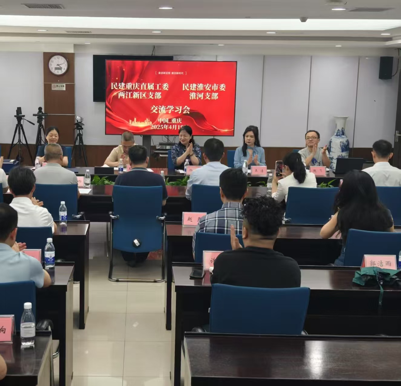 交流过后,缔结友好支部签约仪式将活动推向高潮。在全体与会人员的共同见证下,淮河支部与两江新区支部签署友好支部协议书。协议书的交换,不仅是一纸约定,更是两地民建支部携手共进、资源共享、优势互补的郑重承诺。合影留念时,大家笑容满面,镜头定格下这一具有里程碑意义的瞬间。