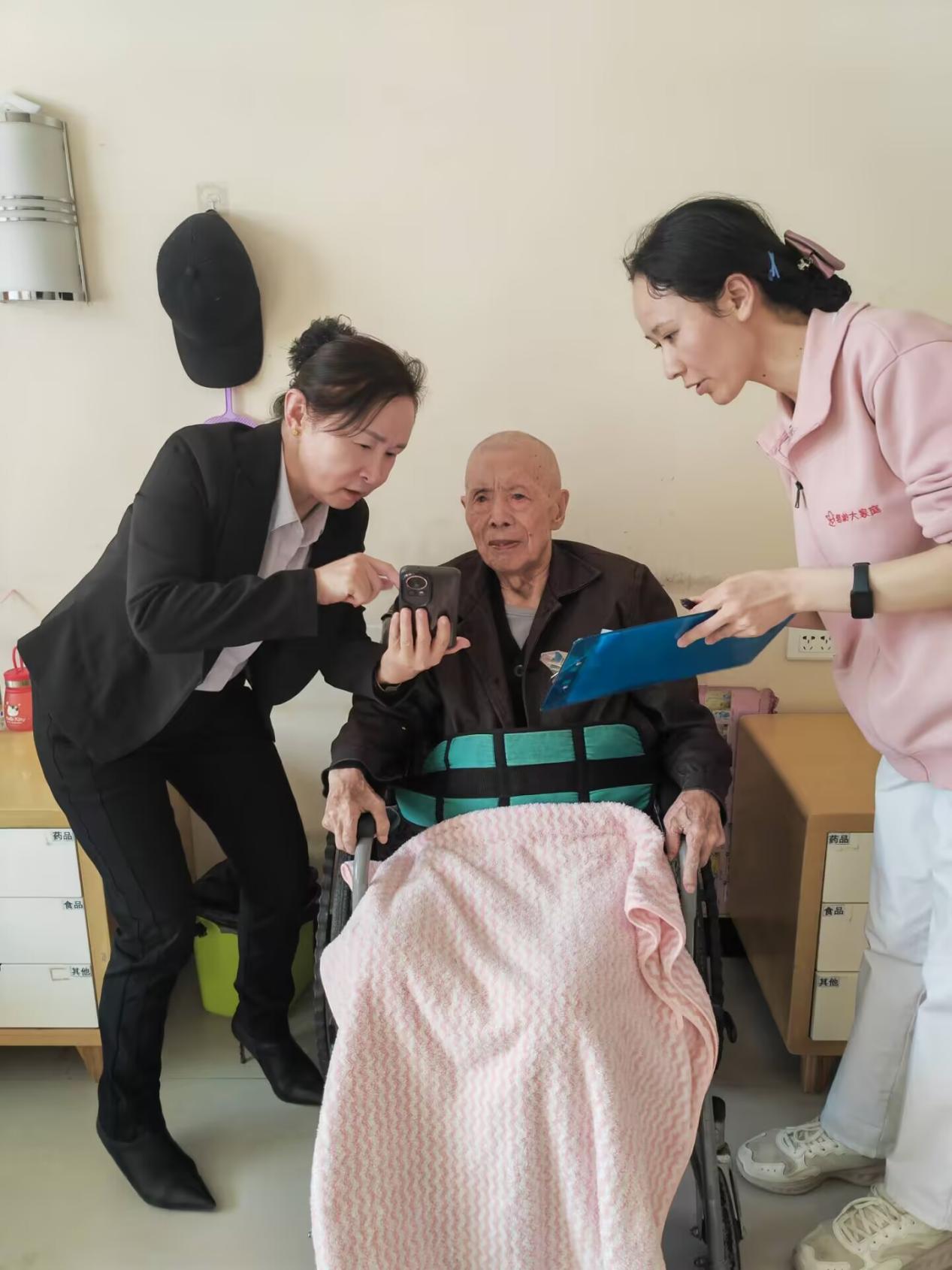 贴心服务,解决老人“认证难”。“奶奶,您看着镜头眨眨眼,认证就完成啦!”“爷爷,您的养老金每月都会按时到账,您放心吧!”活动现场,社保工作人员耐心帮助老人们通过“手机APP刷脸”完成资格认证,针对面部识别困难的老人,工作人员现场与老人拍照合影,确保每一位老人及时完成认证,避免待遇发放中断。活动当天共为41名老人完成认证,得到老人们连连称赞:“现在党的政策真好,服务都送到床边了,太方便了,感谢党感谢政府!”