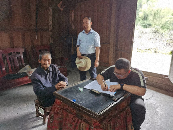图为驻村工作队员雷雨田认真记录独居老人反映的生活难题。