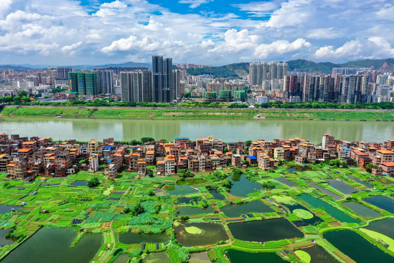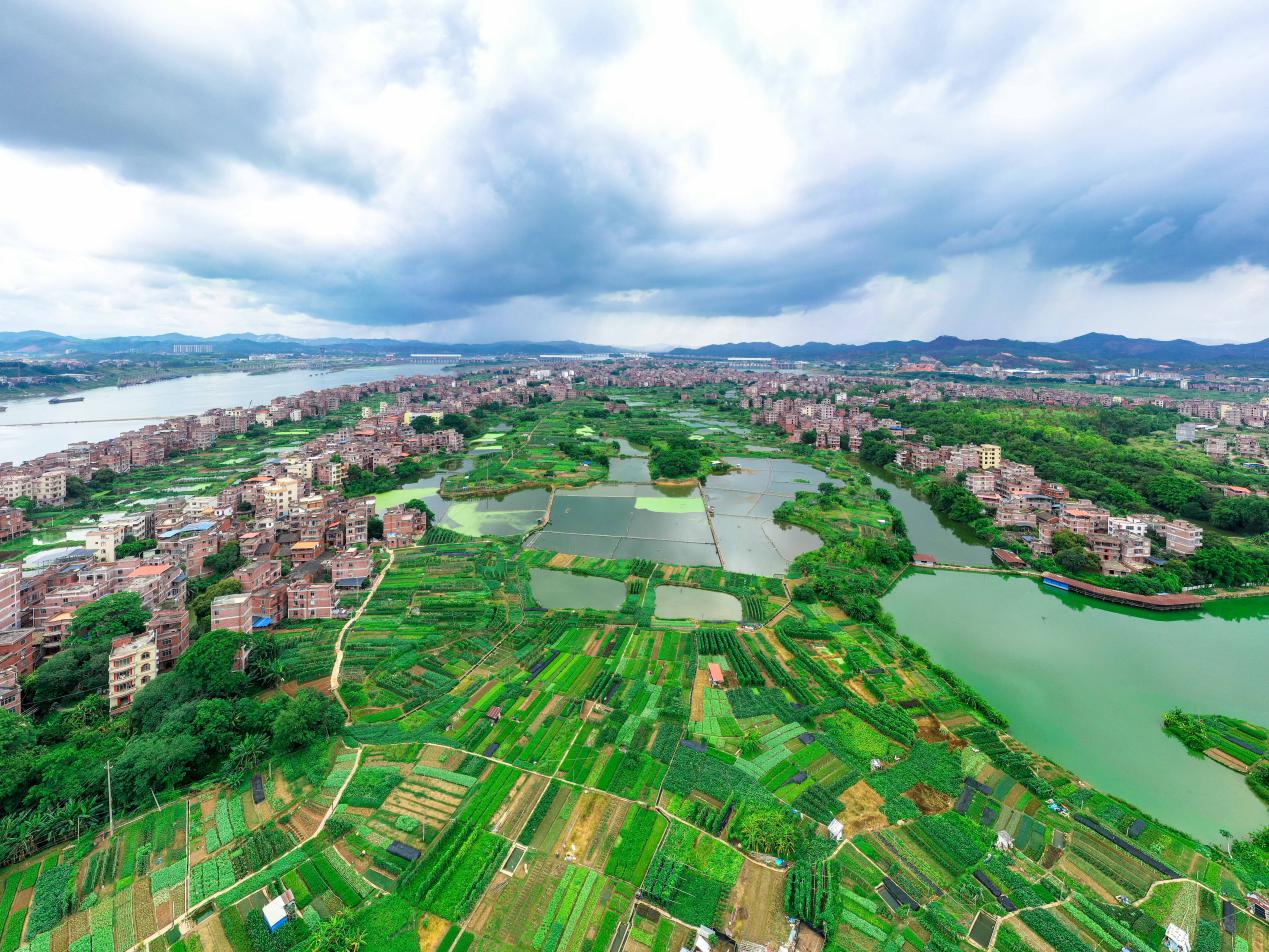 2025年5月16日,初夏时节,广西梧州市长洲岛生态蔬菜基地菜畦绿,鱼塘碧,城乡美,色彩斑斓宛如壮丽画卷。