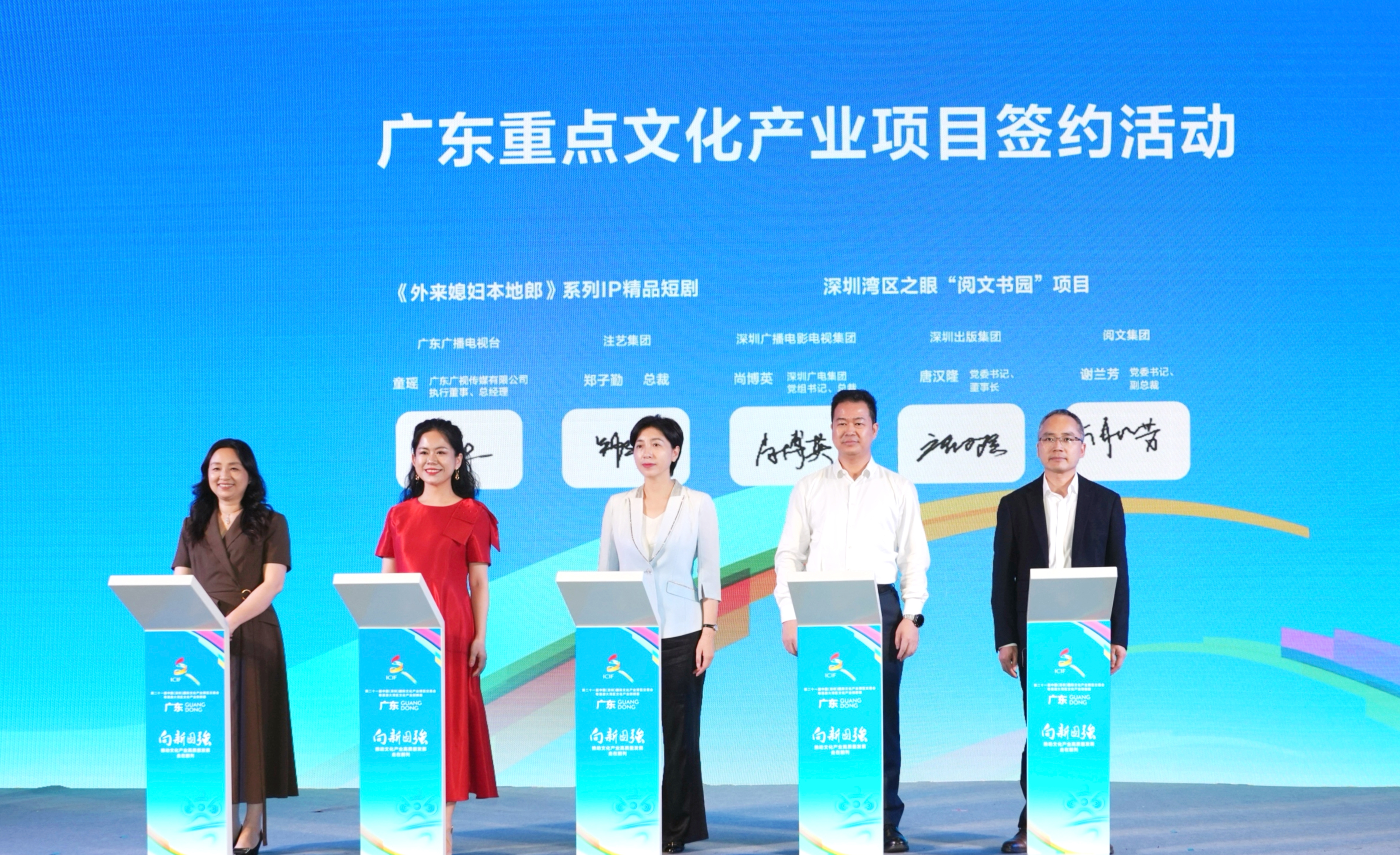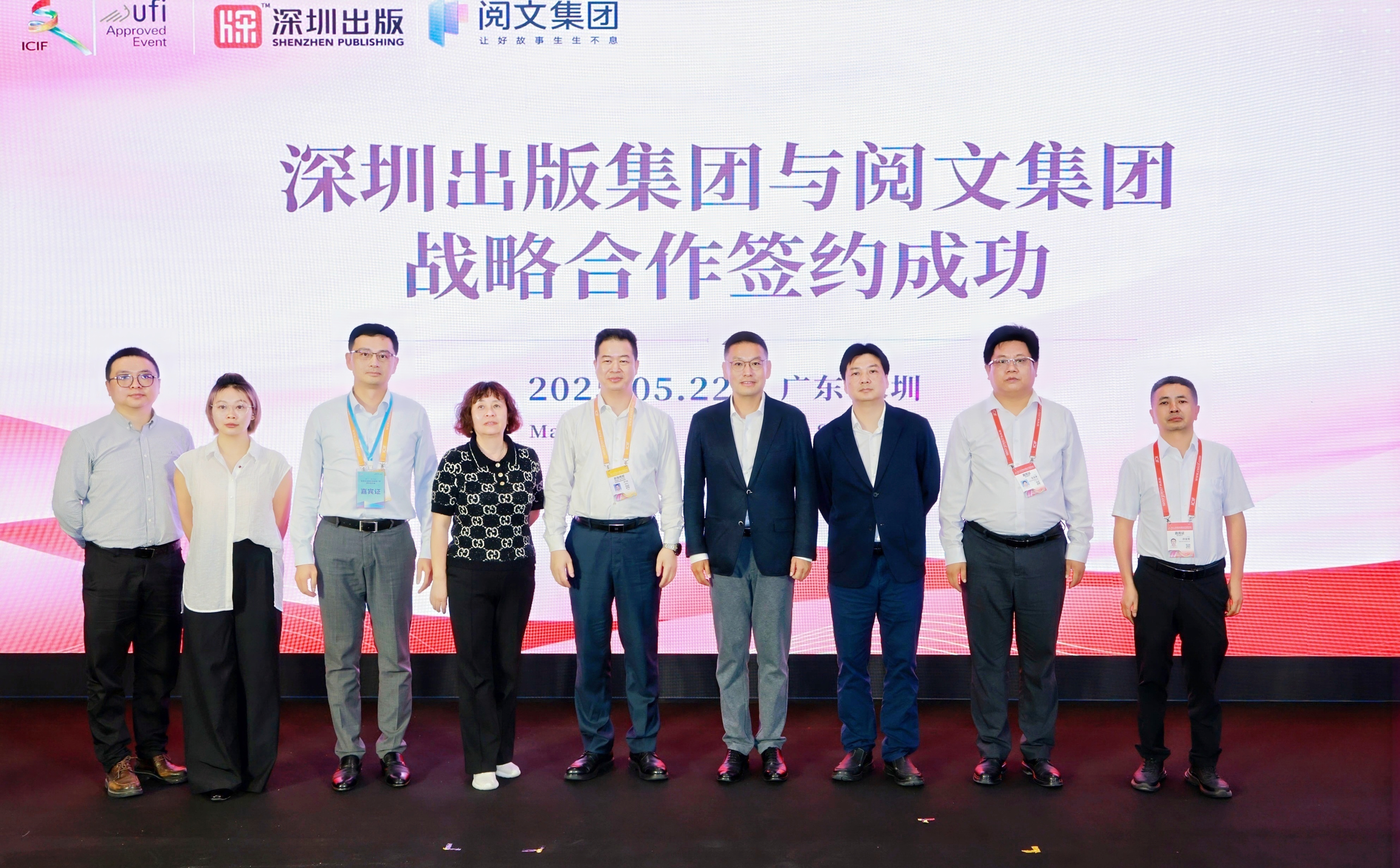 5月22日,在第二十一届文博会上,深圳出版集团与阅文集团、深圳广电集团签署战略合作协议,将在深圳“湾区之眼”落地首个IP综合体验空间“阅文书园”,构建“阅读+IP周边+互动体验+社交活动”的年轻人文化消费新业态,助力深圳城市IP与文化建设。深圳出版集团党委书记、董事长唐汉隆,阅文集团党委书记、副总裁谢兰芳,深圳广电集团党组书记、总裁尚博英分别代表三方签署协议。