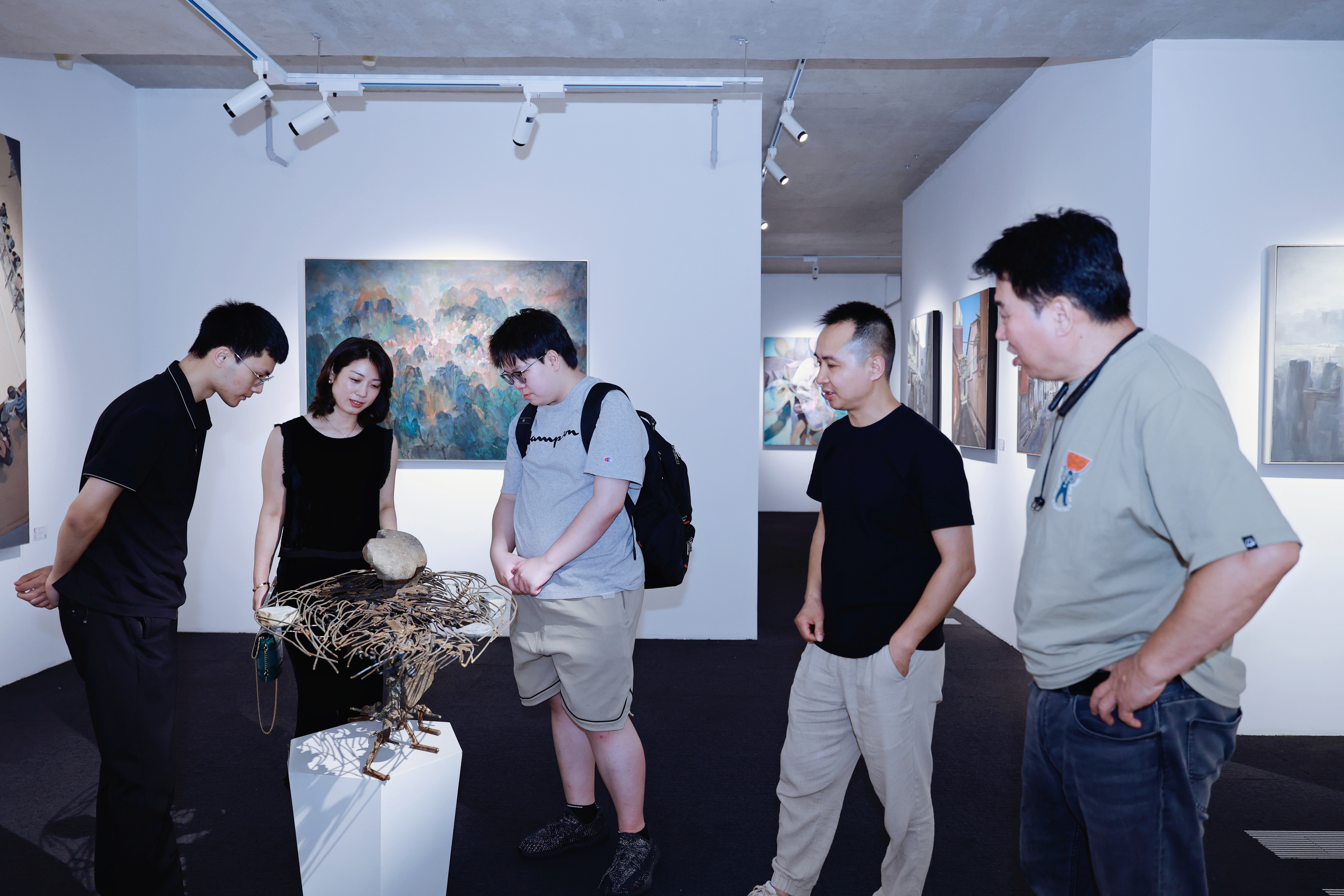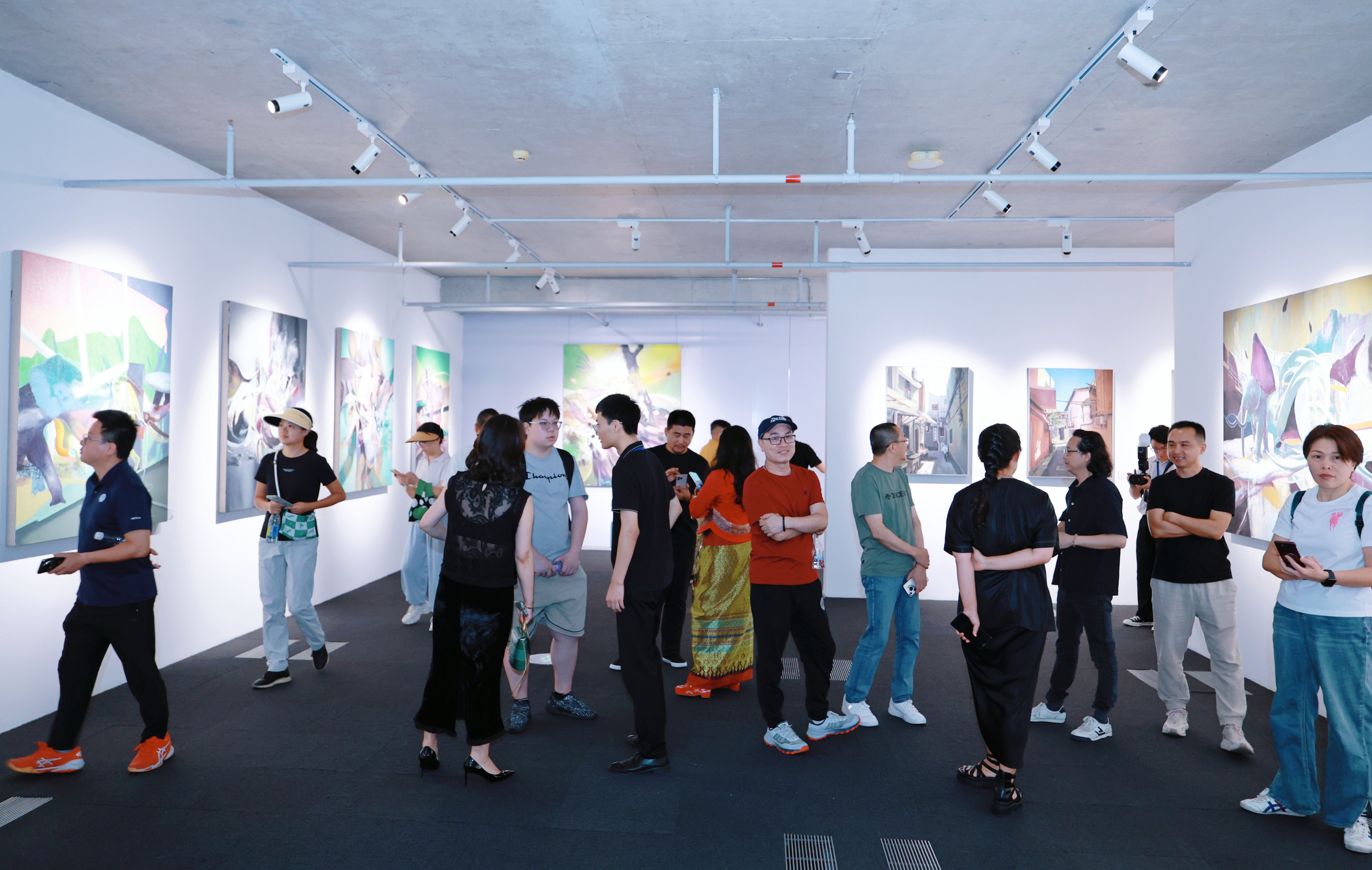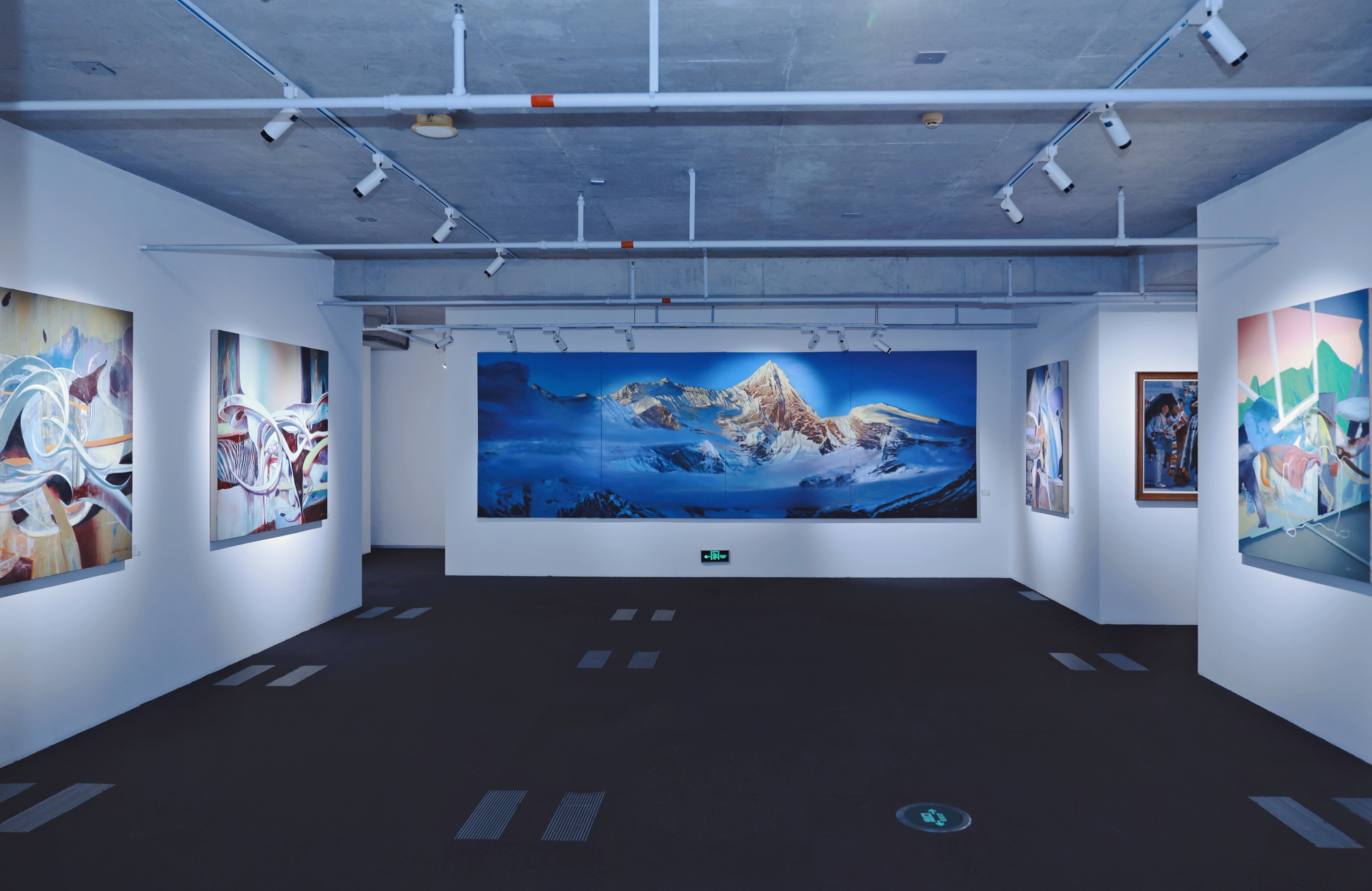 本次展览以“褶皱与异质共生”为主题,借助艺术与数字密码的多元重构,深入探讨文明多样性之间的对话空间。展厅中央,艺术家周进的巨幅作品《西藏·南迦巴瓦》以其宏大笔触直击观者视野,与展厅中其他风格迥异的艺术作品相互呼应,共同为观者呈现了一场完美的视觉盛宴,开启了一场跨越时空与文化的艺术之旅。