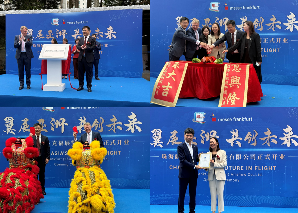 在开幕典礼之际,法兰克福展览集团总裁兼首席执行官马赋康强调了成立全新合资公司的长期意义:“珠海是航空制造和贸易的重要地区,也是华南大湾区的重要组成部分。在此设立合资公司,是法兰克福展览集团深入当地通用航空行业和低空经济领域的关键一步,不仅为即将到来的展会,也为未来多年的发展奠定基础。这一新合资企业彰显了集团对该领域的坚定承诺,我们将与珠海航展集团有限公司携手,共同推动AERO品牌在亚洲的发展。”
