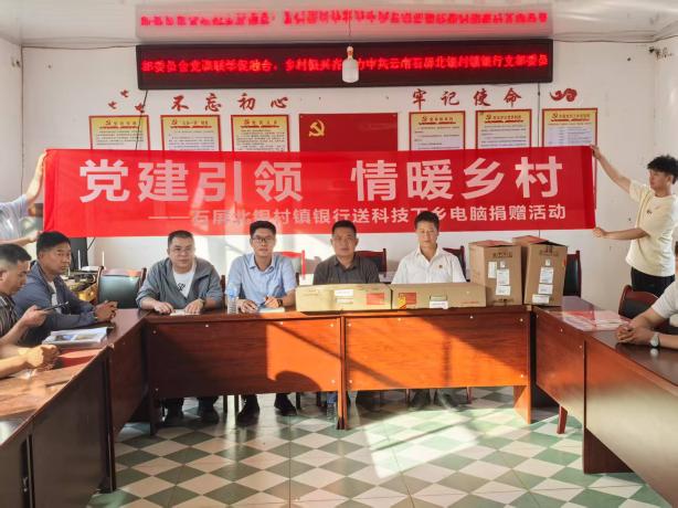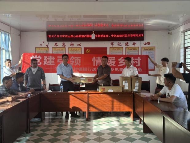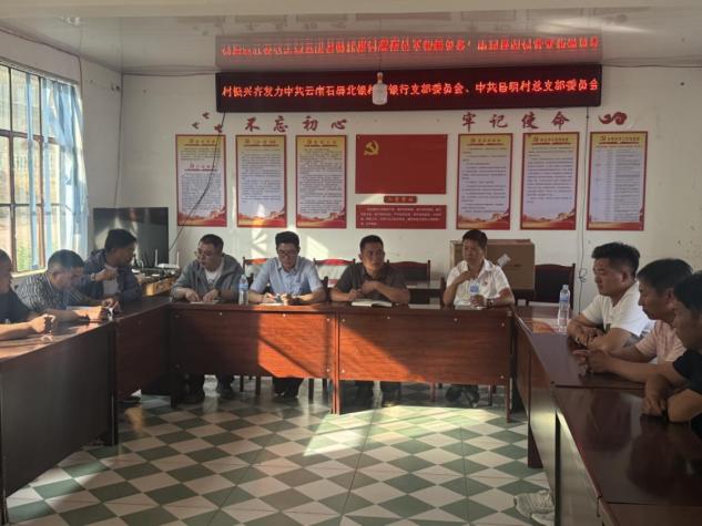 为深入贯彻落实党的二十大精神,深化党建引领乡村振兴战略,推动金融资源下沉基层,2025年5月22日,云南石屏北银村镇银行赴龙武镇昌明村委会联合开展党课学习活动,同步举办办公用品捐赠仪式及金融服务志愿者挂牌仪式。昌明村委会班子成员、村民代表及石屏北银村镇银行干部职工共30余人参与活动。