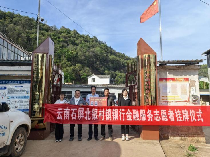 活动现场举行“金融服务志愿者”挂牌仪式,石屏北银村镇银行行长苏帅、市场总监普孝慈与昌明村党总支书记普自旺共同揭牌。后续我行将常态化开展金融知识宣传、惠农信贷咨询、反诈防骗教育等服务,2名银行员工组成志愿者队伍,定期驻村为村民提供“零距离”金融支持。