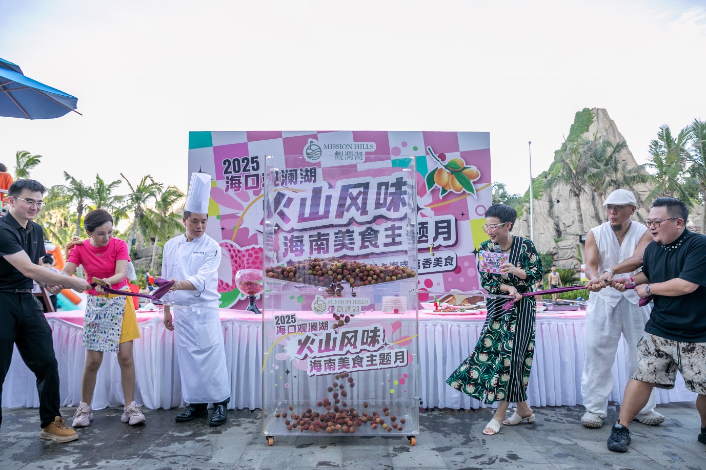 这场美食主题月的灵感源于海口观澜湖独特的火山地质资源。这里不仅拥有世界级的火山岩高尔夫球场和天然矿温泉,还孕育出了风味独特的火山美食。据悉,未来一个月,观澜湖将推出系列精彩活动。名厨挑战赛“拜托了!荔枝”将邀请本地美食博主与酒店大厨同台竞技,用海南本土食材创作创意料理;美食达人挑战赛设置了海南粉制作、剥和乐蟹竞速等趣味比拼;亲子荔枝采摘节则让孩子们在美食与探索中共享温馨亲子时光。此外,酒店邀月亭餐厅将以火山荔枝、富硒黄皮等火山产区食材为核心,推出应季限定菜品;高尔夫球场增设火山补给站,为运动爱好者提供荔枝、黄皮等消暑冰饮。