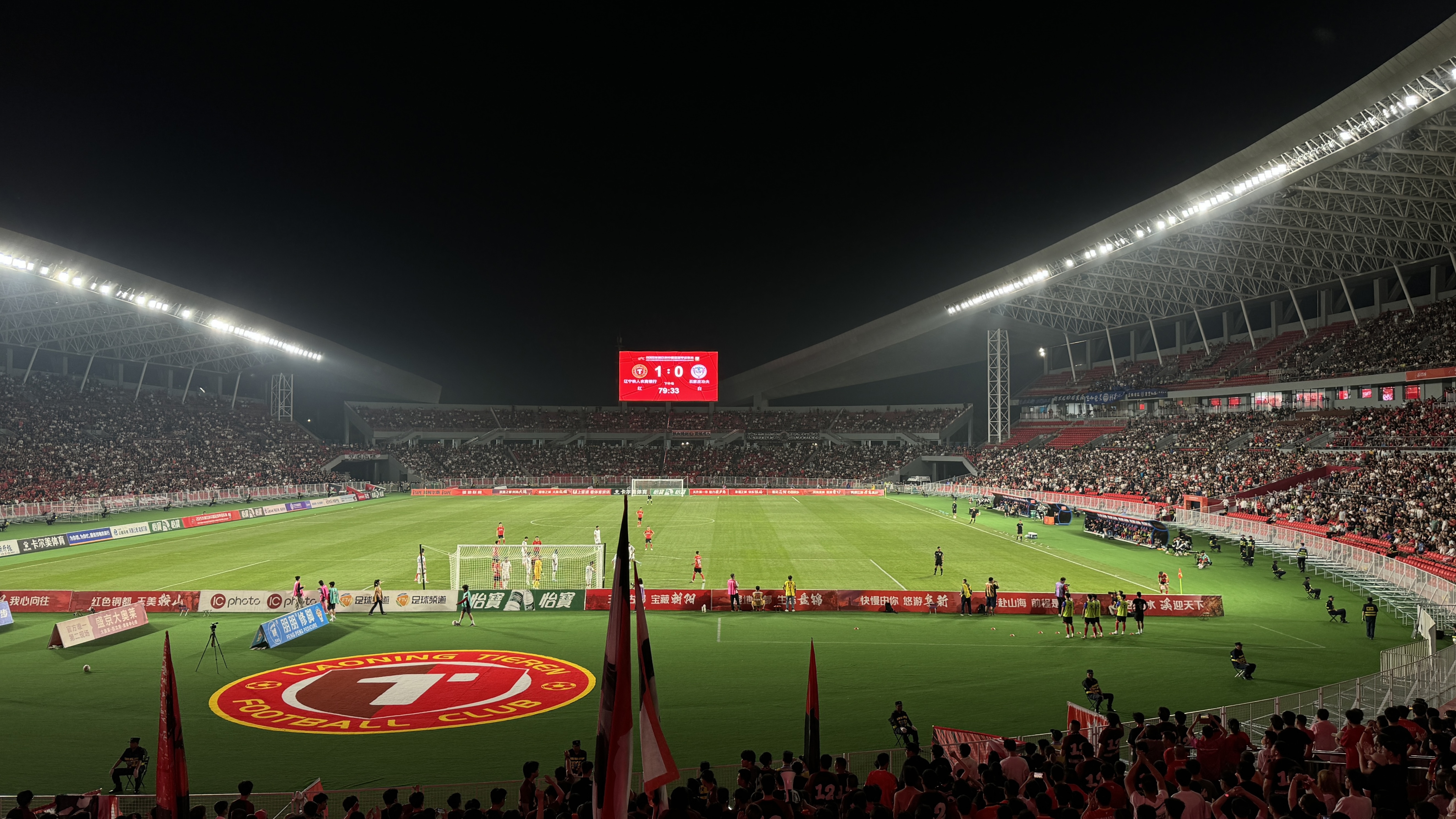 当晚17时起球迷陆续入场,在铁西体育场北门广场8米高充气球衣旁合影、签名墙留名。赛前,暖场音乐响起,体育场内新安装的智能高清灯光系统随着音乐的节奏变换亮度,足球宝贝热力暖场,两位辽宁籍歌手现场献唱,“新铁体”内的火热气氛被点燃。当北区看台的球迷一起将总面积达2290平方米的三面Tifo徐徐展开,场面十分震撼,中间印有虎头标志1800平方米巨幅Tifo更是让新主场虎虎生威。